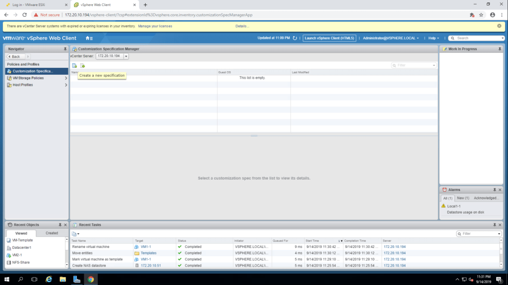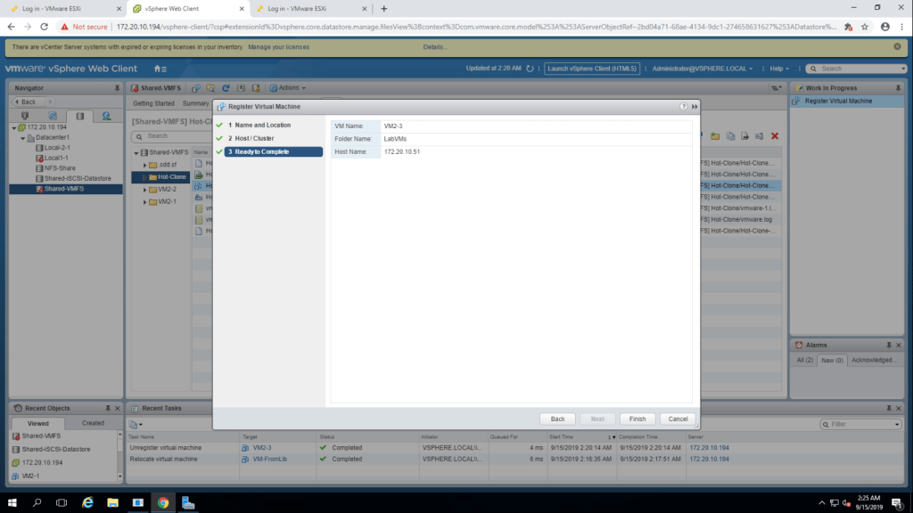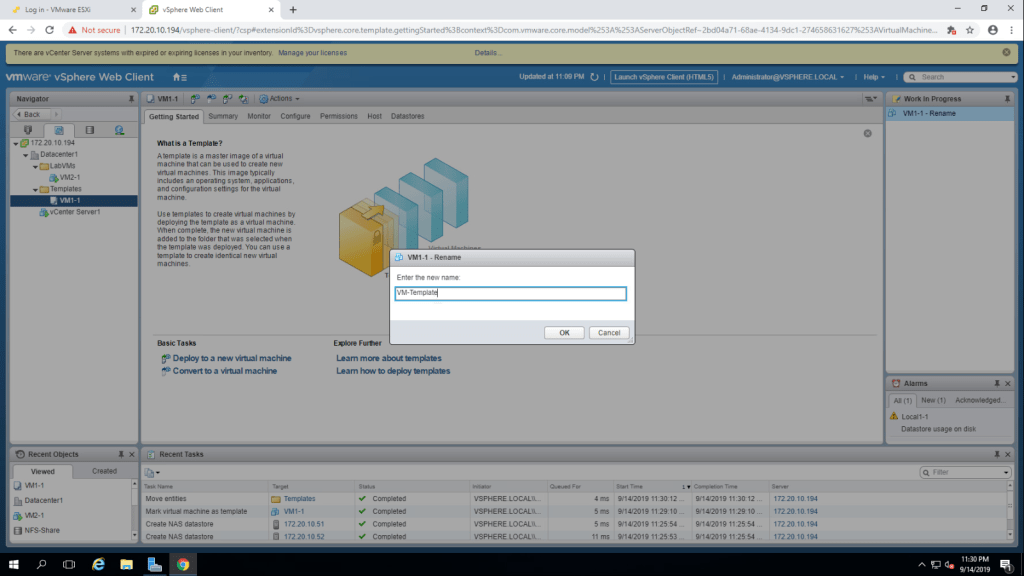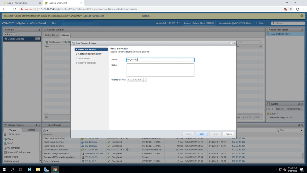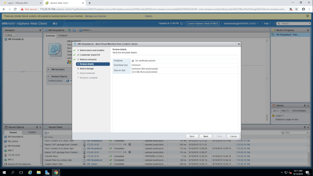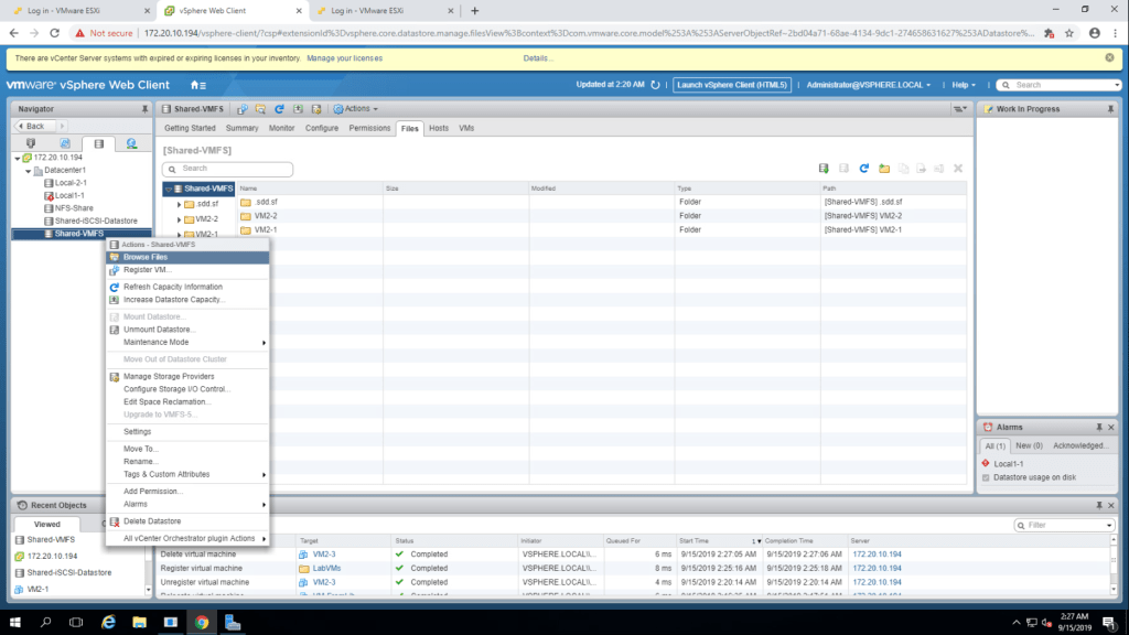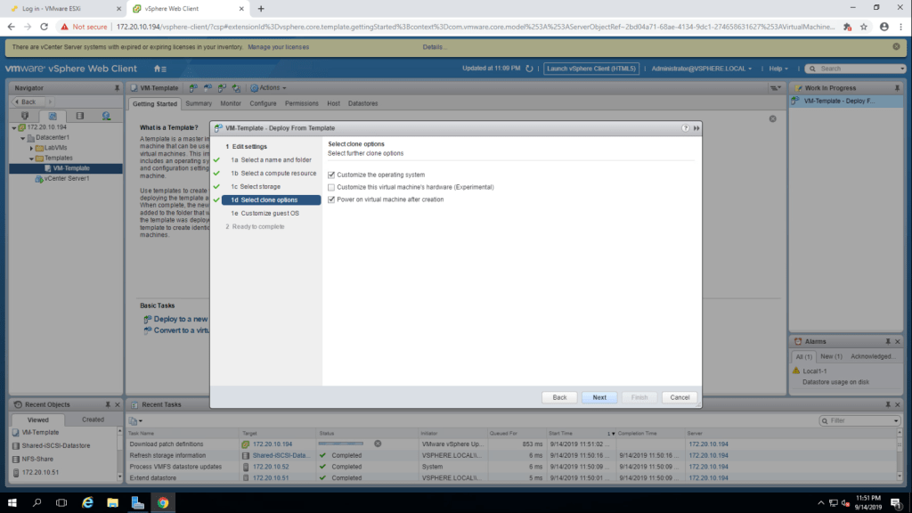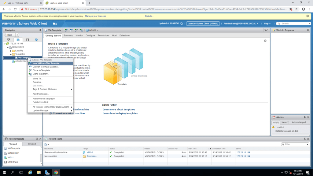 - Right Click on Oscar-N7RP and select Create / Register VM. It will show the New Virtual Machine wizard, click next and then in second step give a name to virtual machine (VM1-1) and select the location. click next.