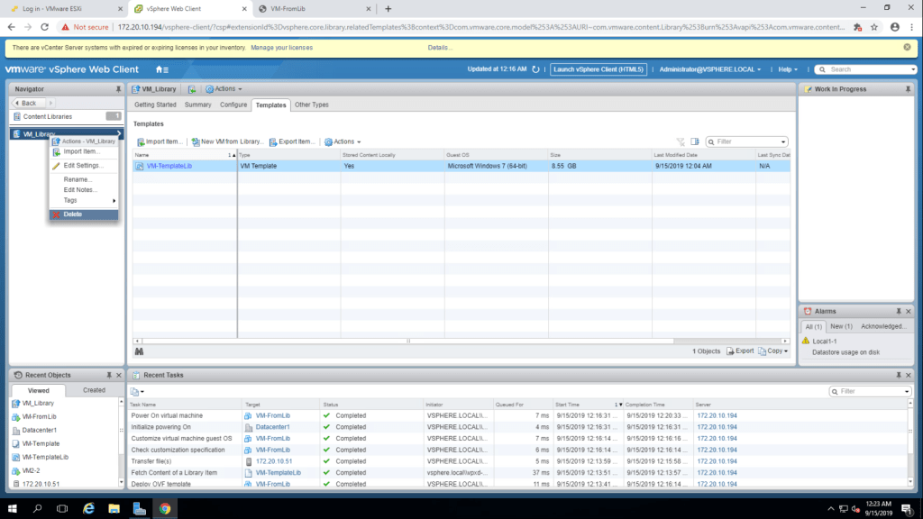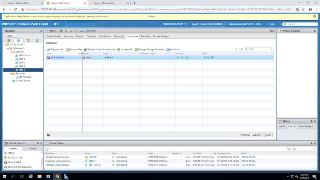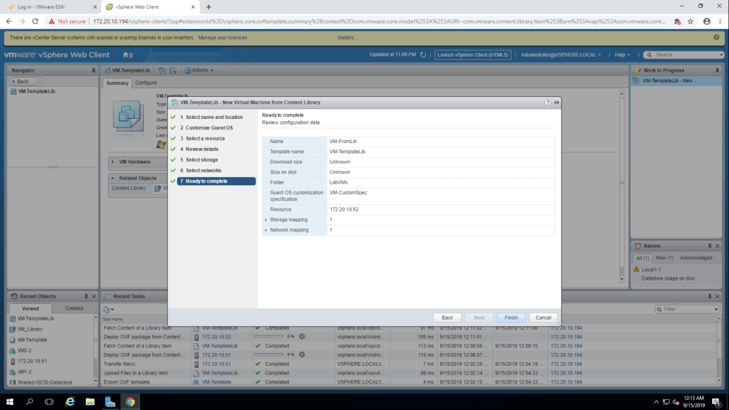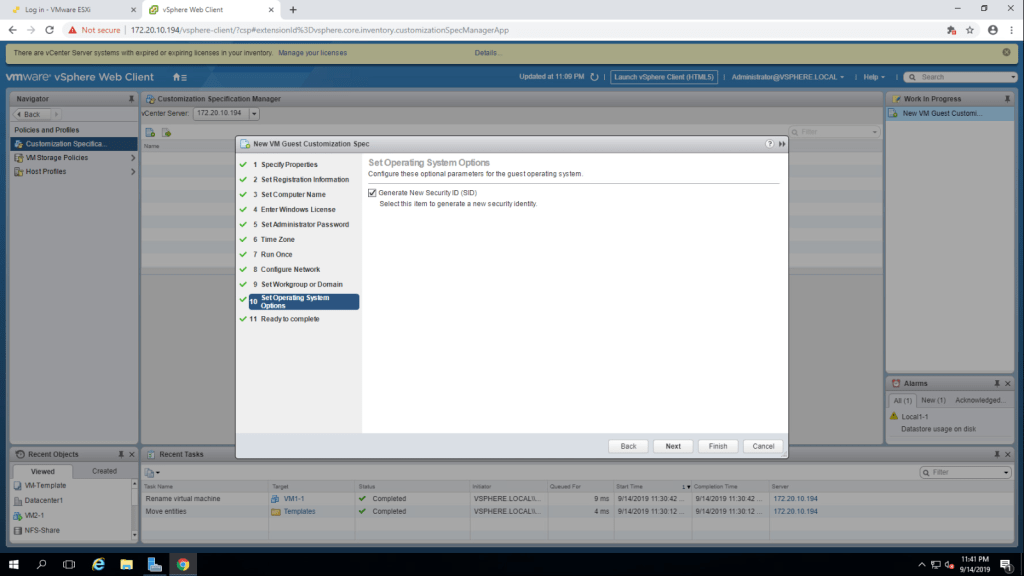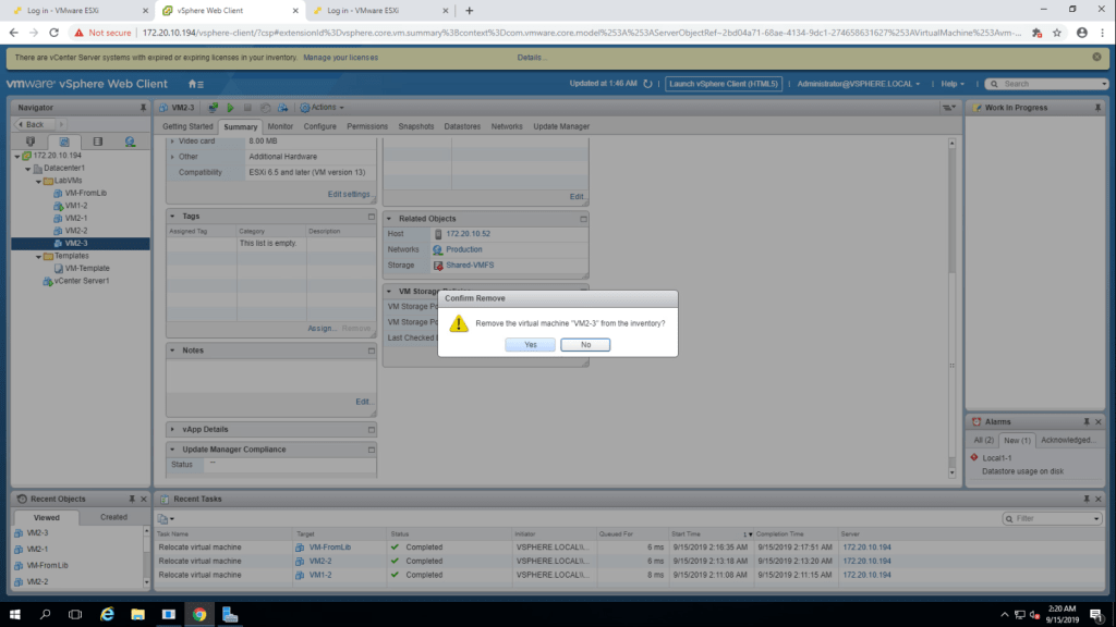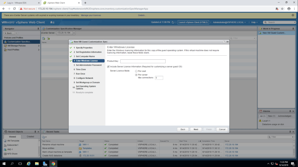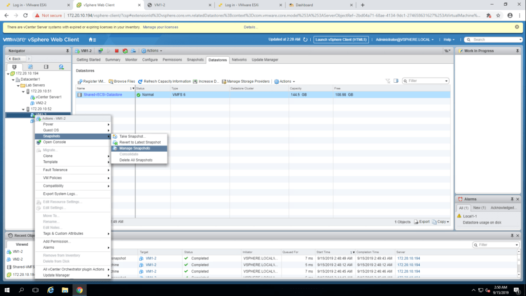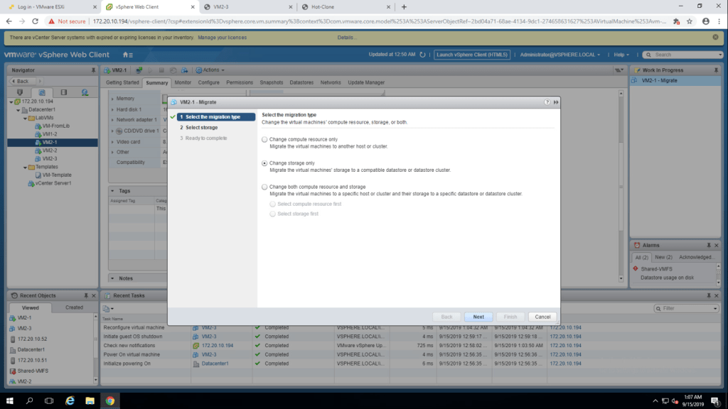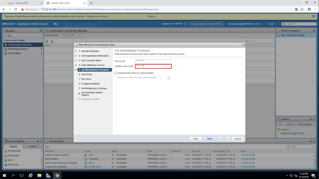 - Right Click on Oscar-N7RP and select Create / Register VM. It will show the New Virtual Machine wizard, click next and then in second step give a name to virtual machine (VM1-1) and select the location. click next.