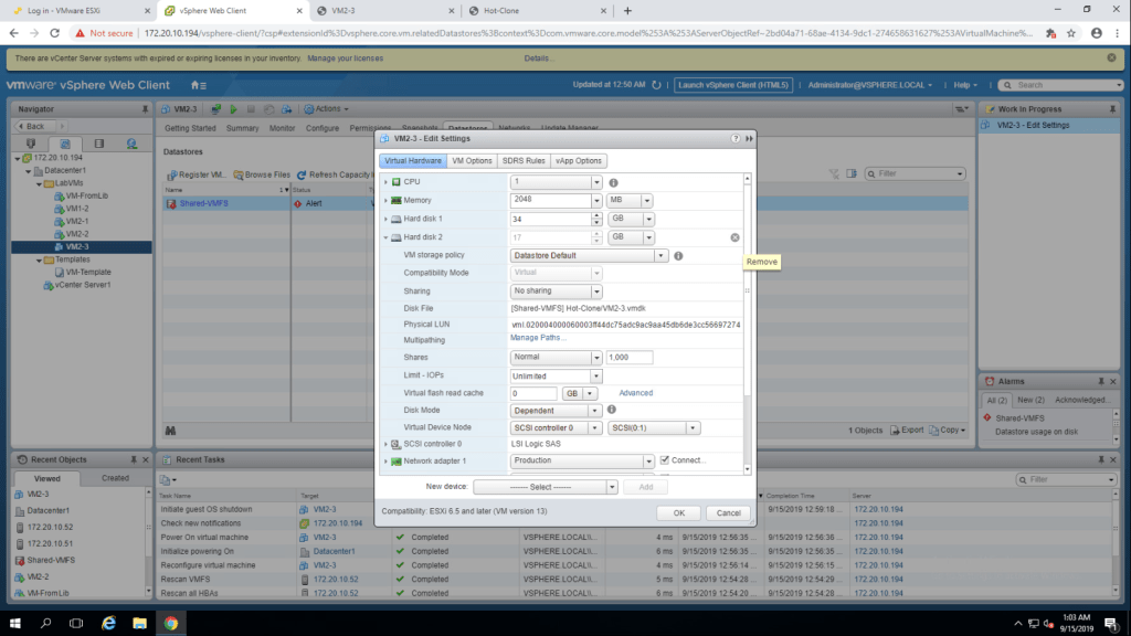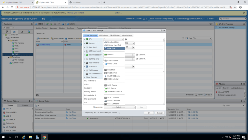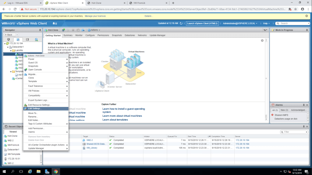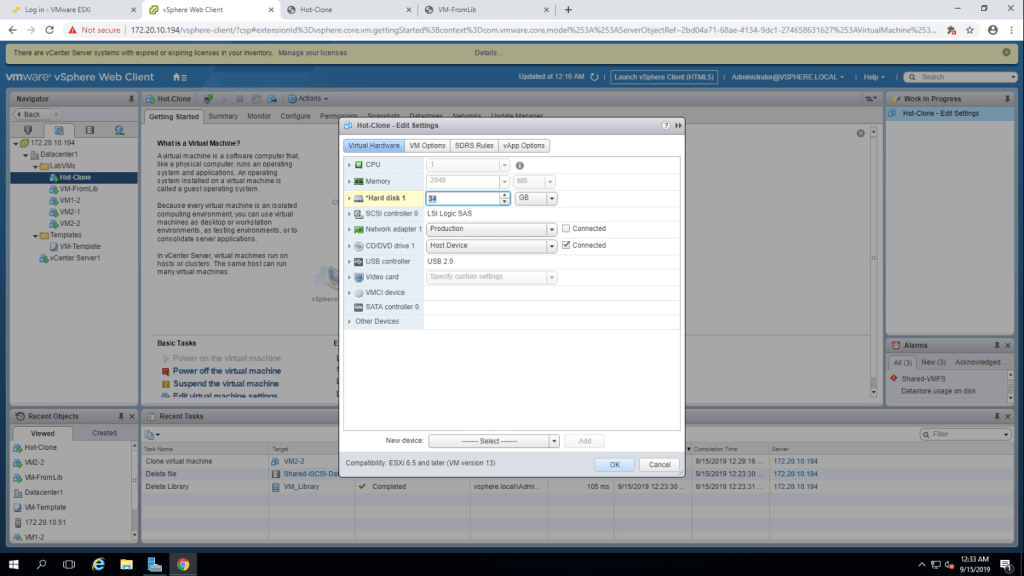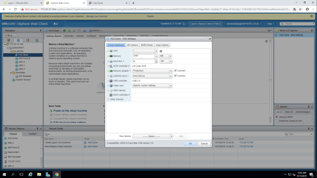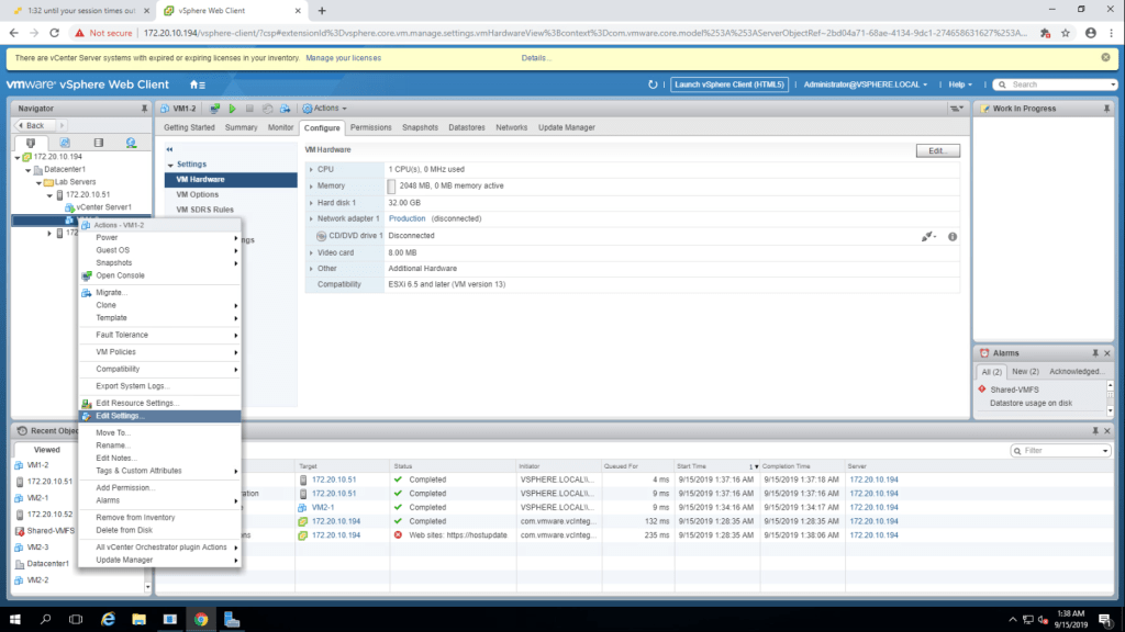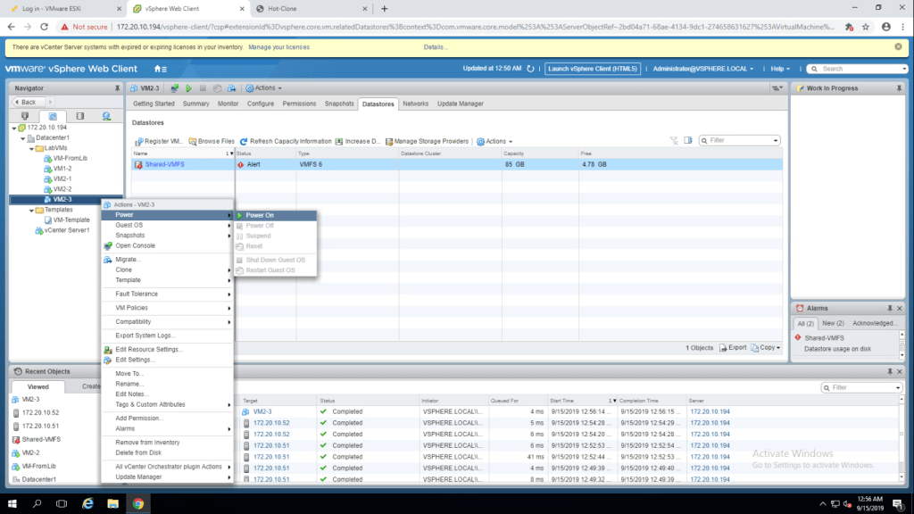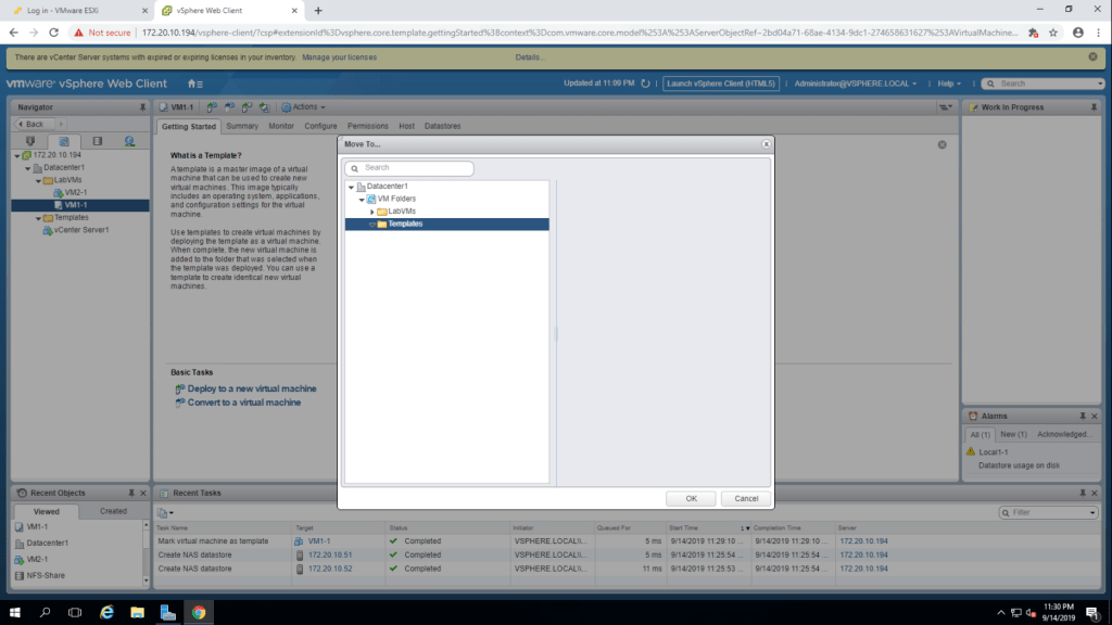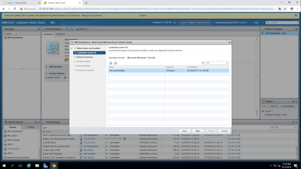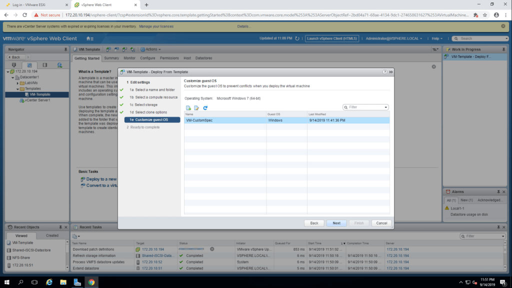 2. Go to Edit settings of VM1-1 and select the appropriate iso file and click ok.then power on the virtual machine and launch console.