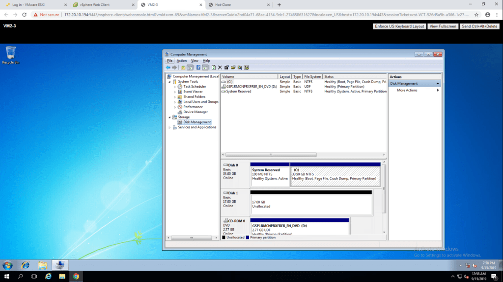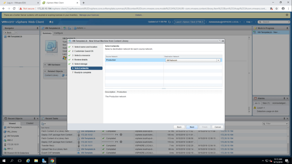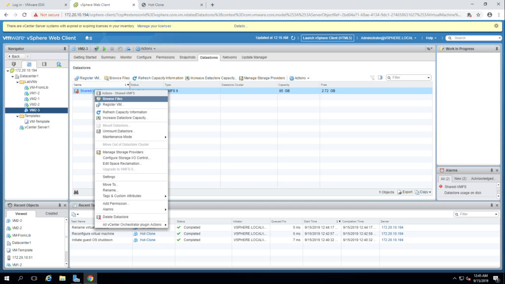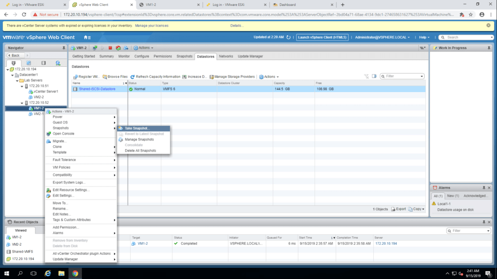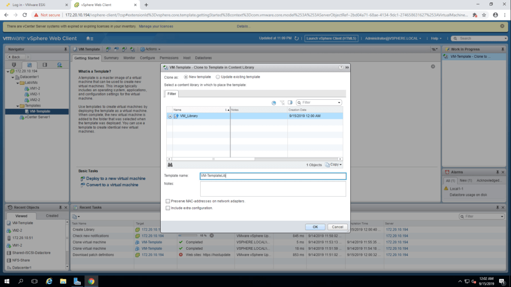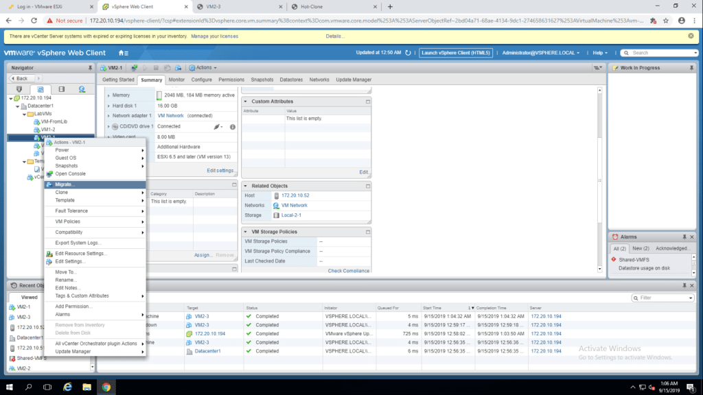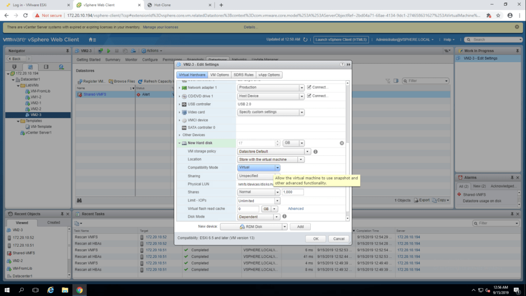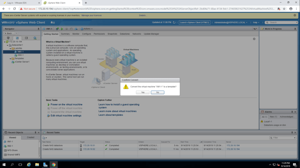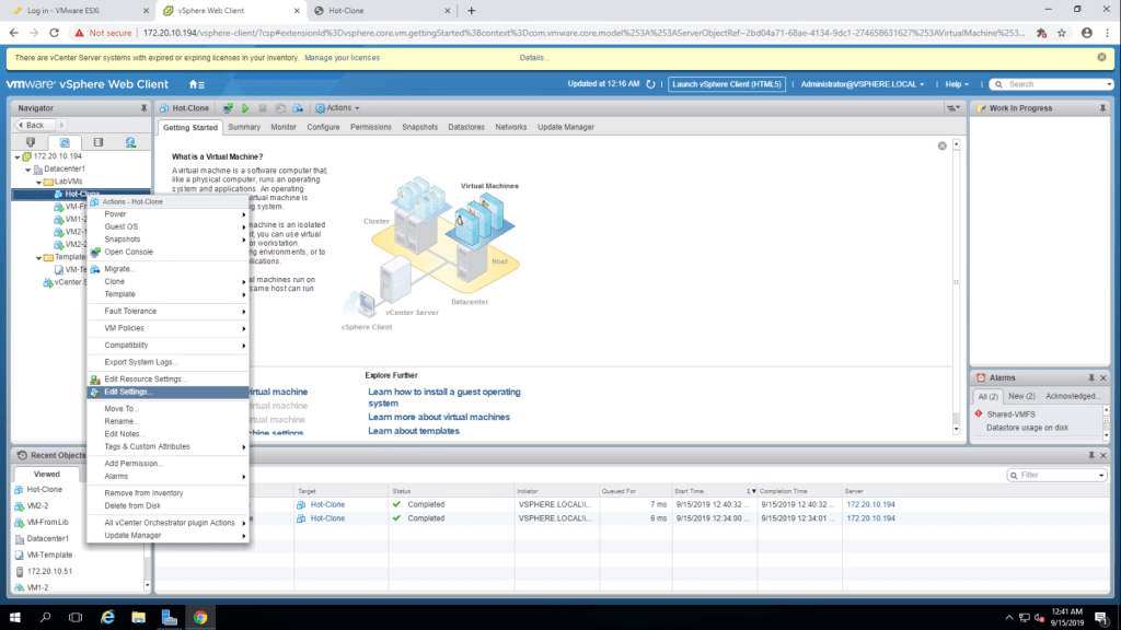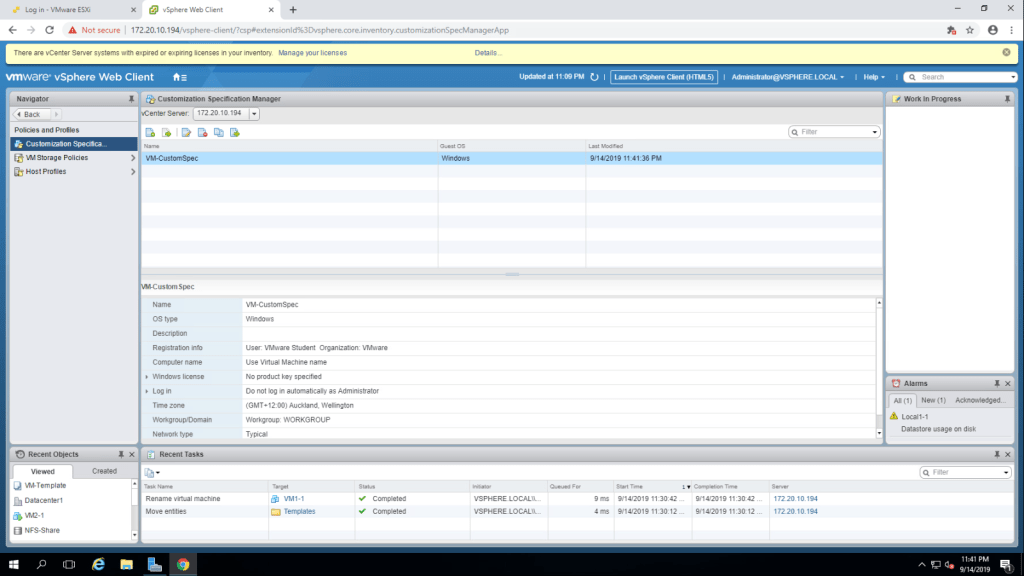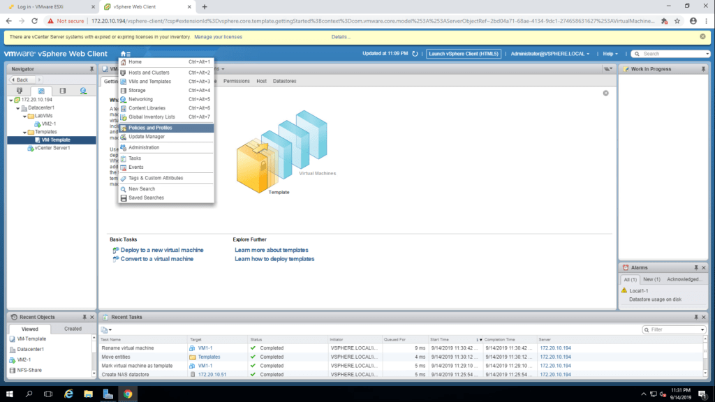 2. Go to Edit settings of VM1-1 and select the appropriate iso file and click ok.then power on the virtual machine and launch console.