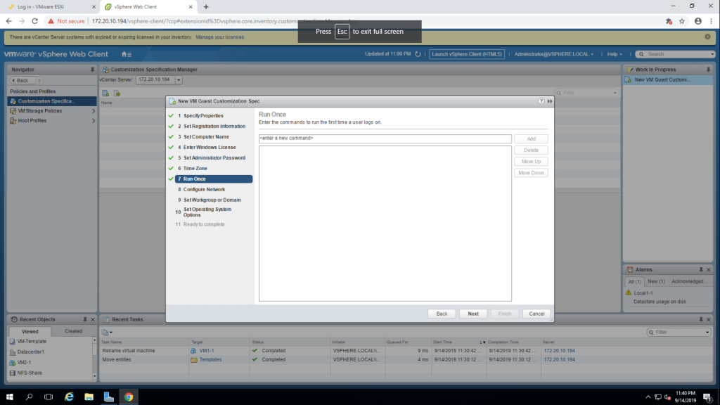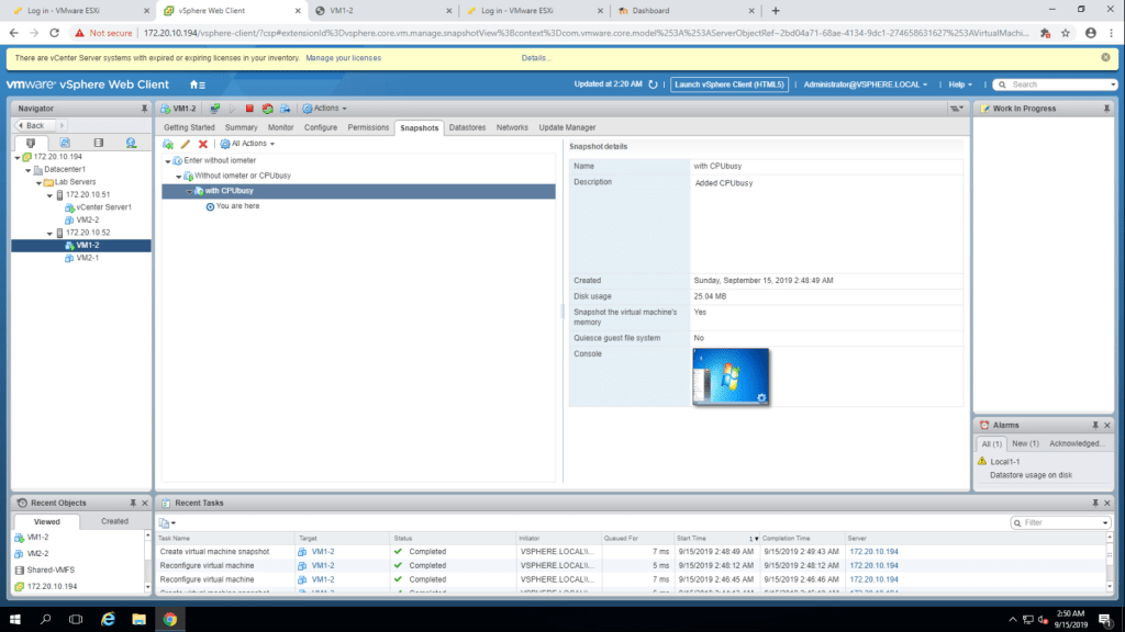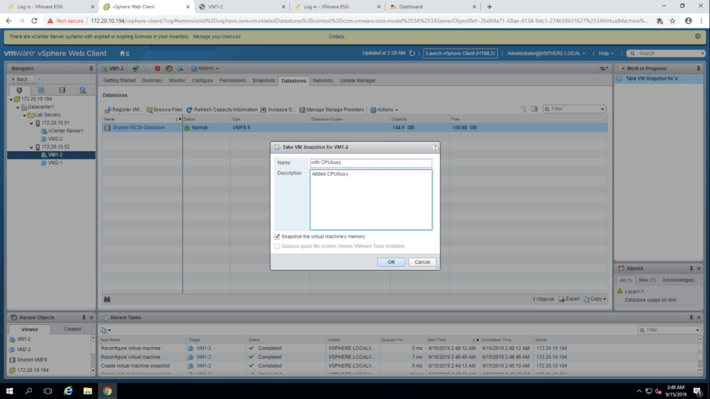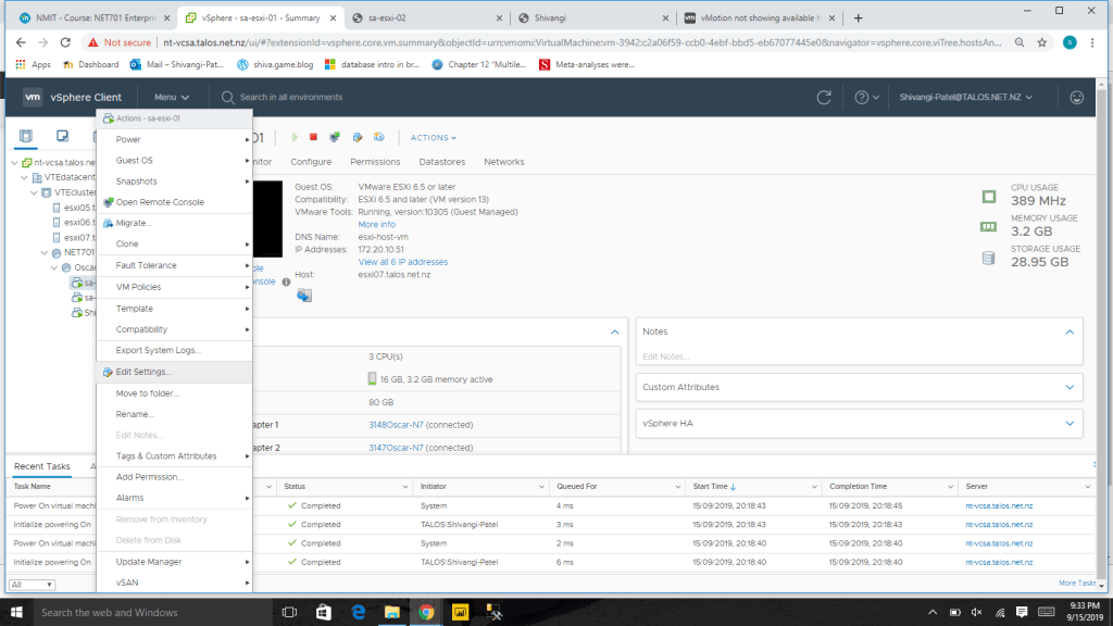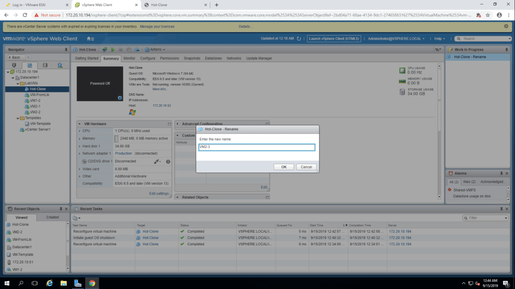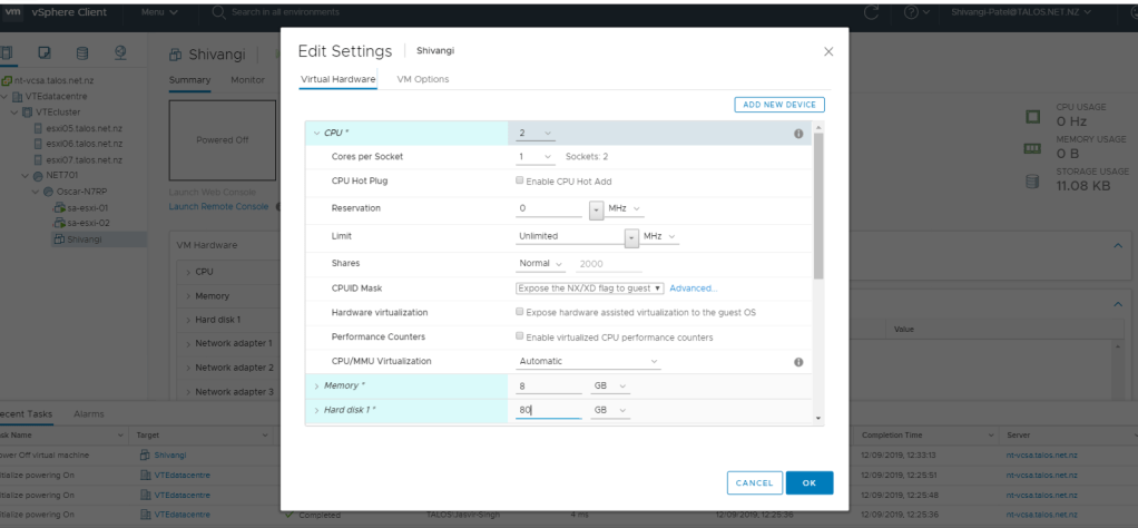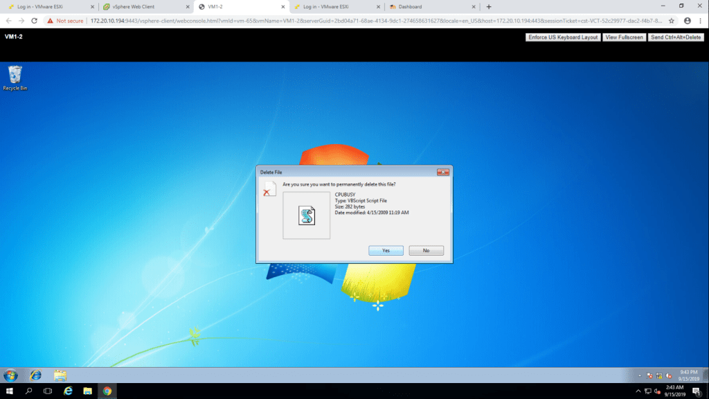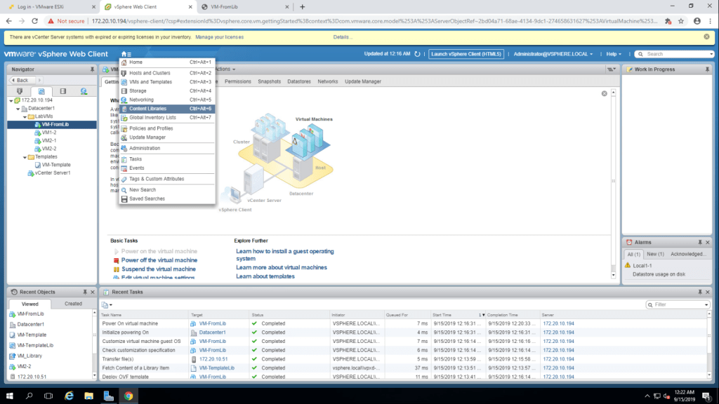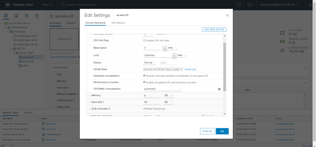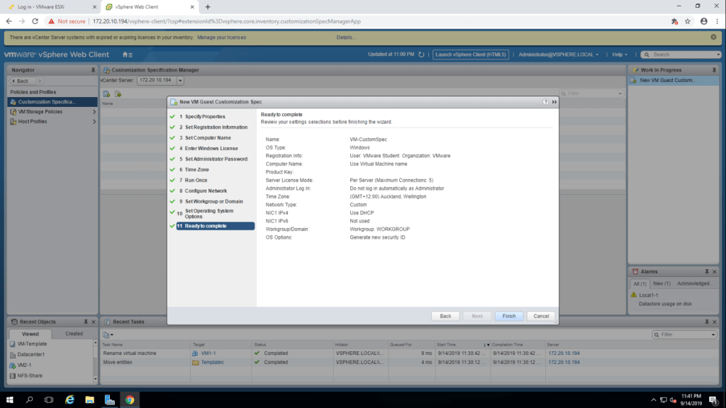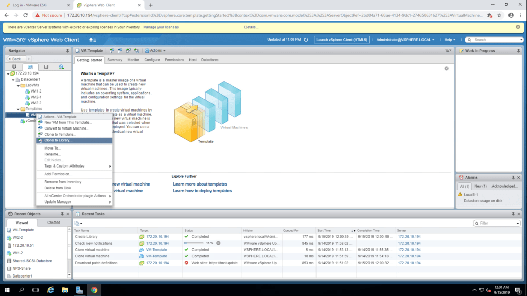 2. Go to Edit settings of VM1-1 and select the appropriate iso file and click ok.then power on the virtual machine and launch console.