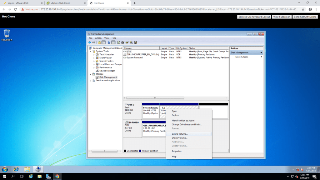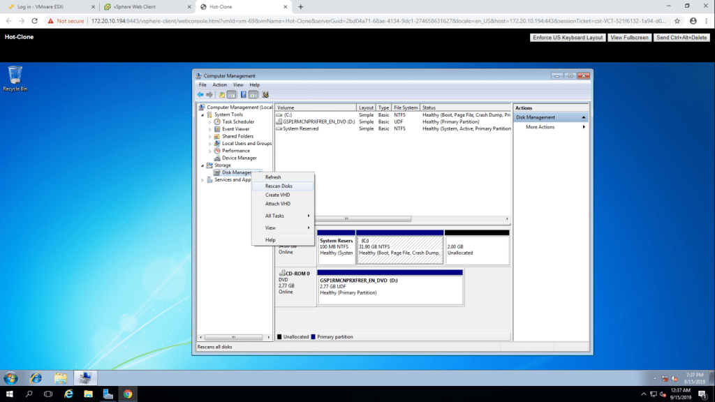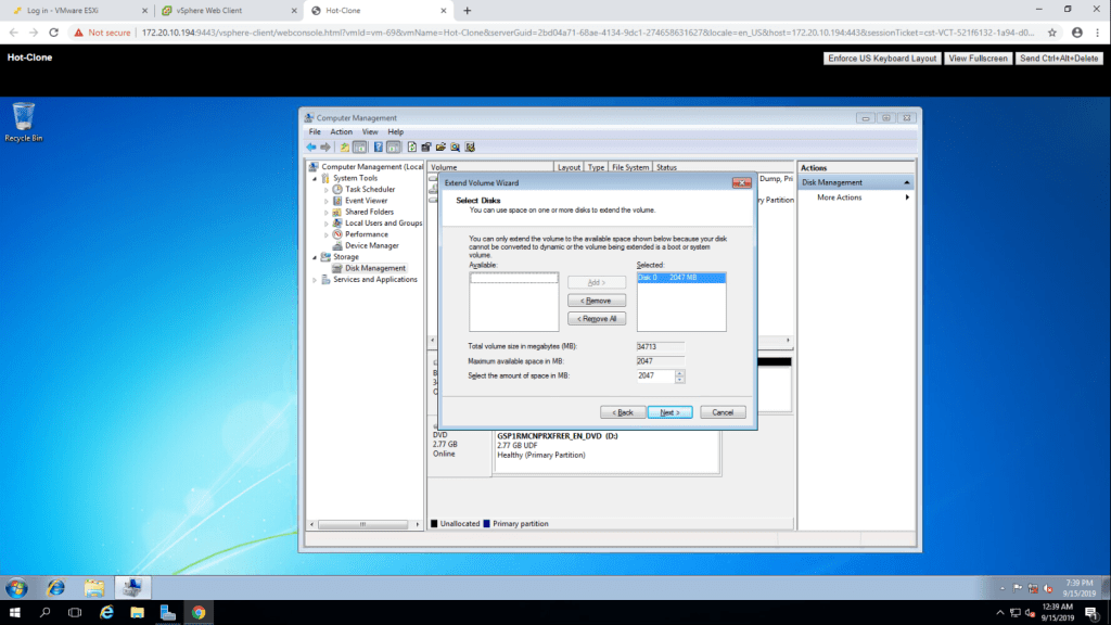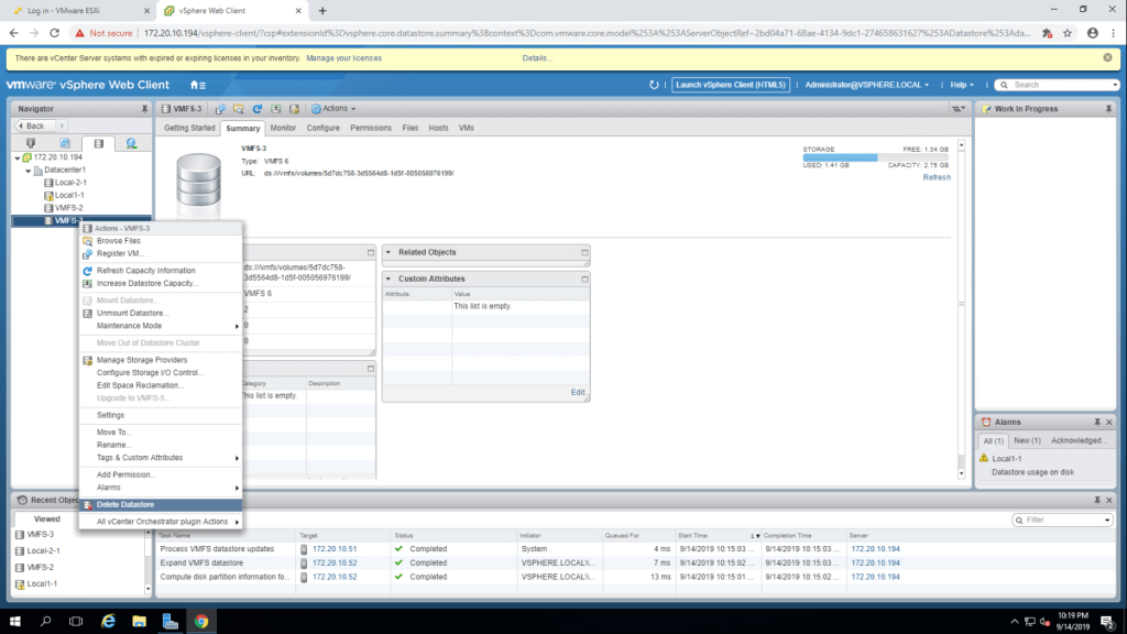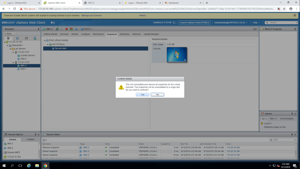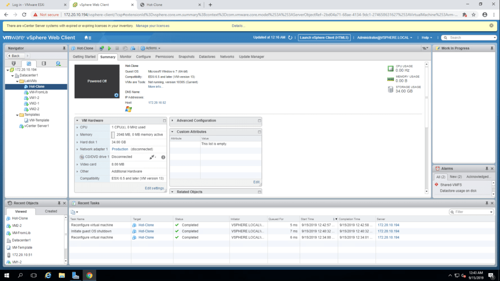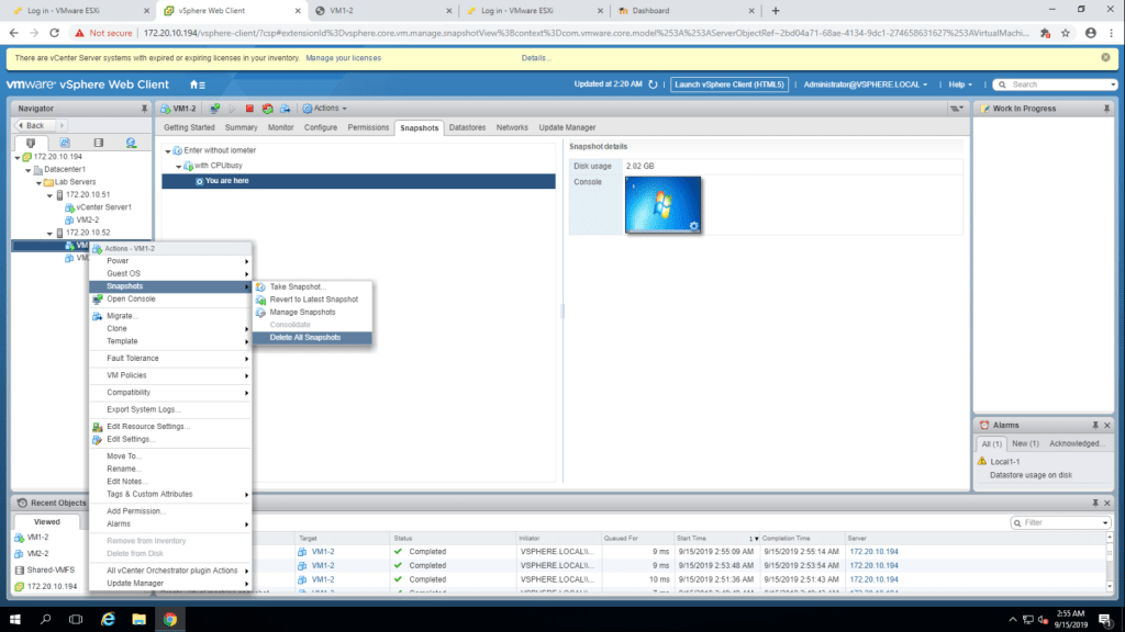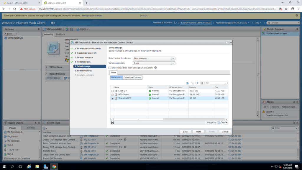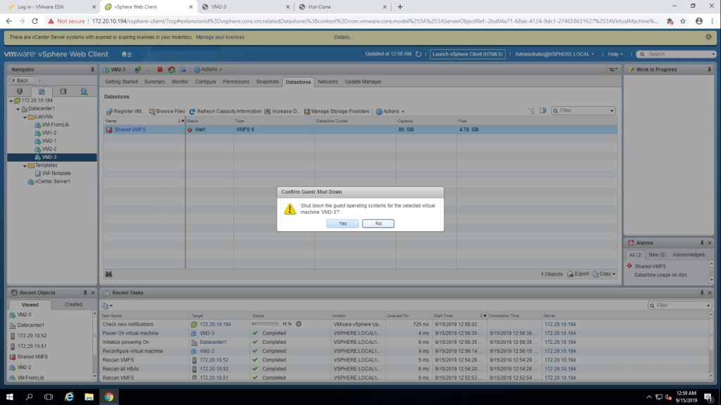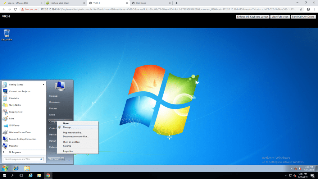 2. Go to Edit settings of VM1-1 and select the appropriate iso file and click ok.then power on the virtual machine and launch console.