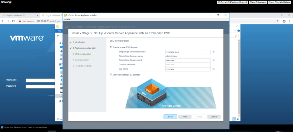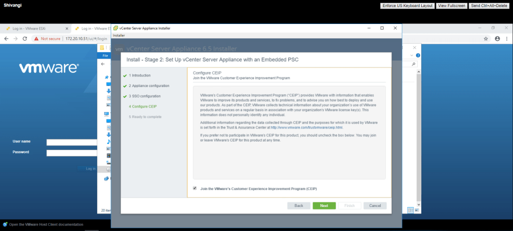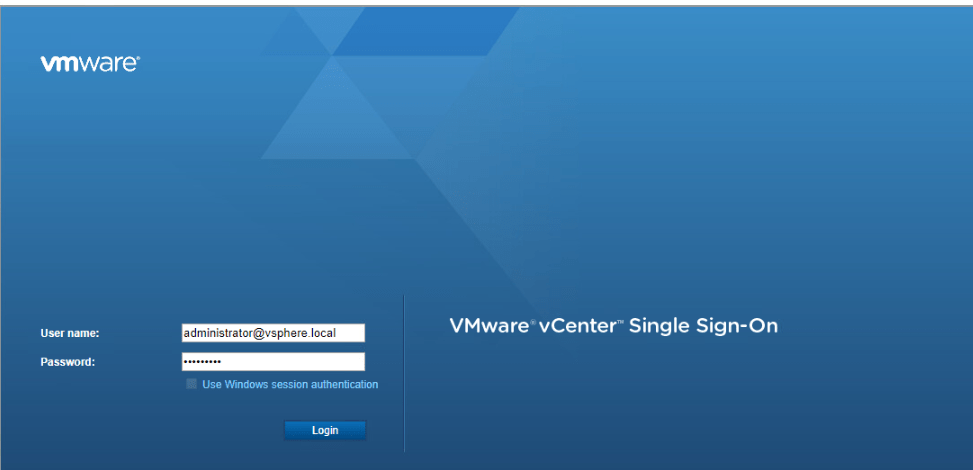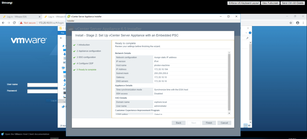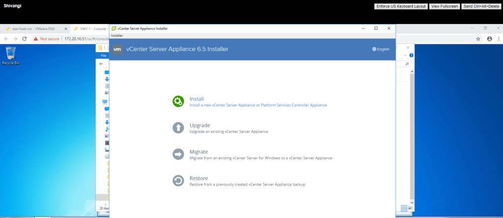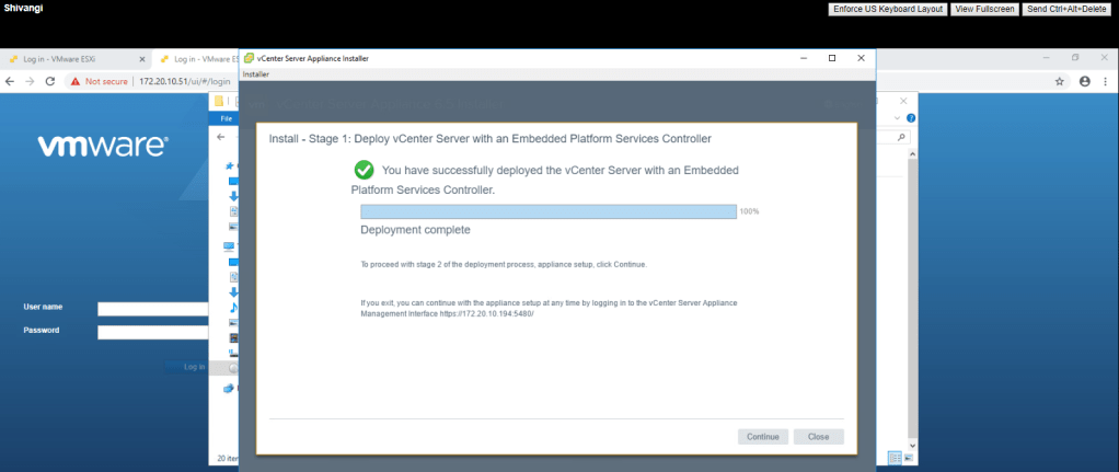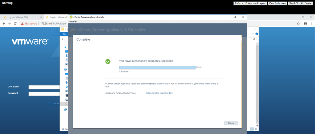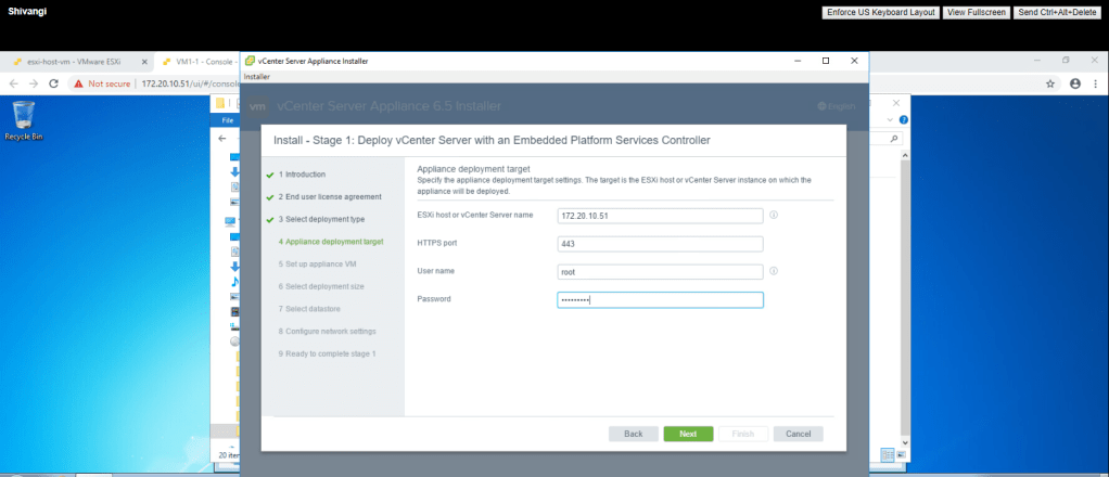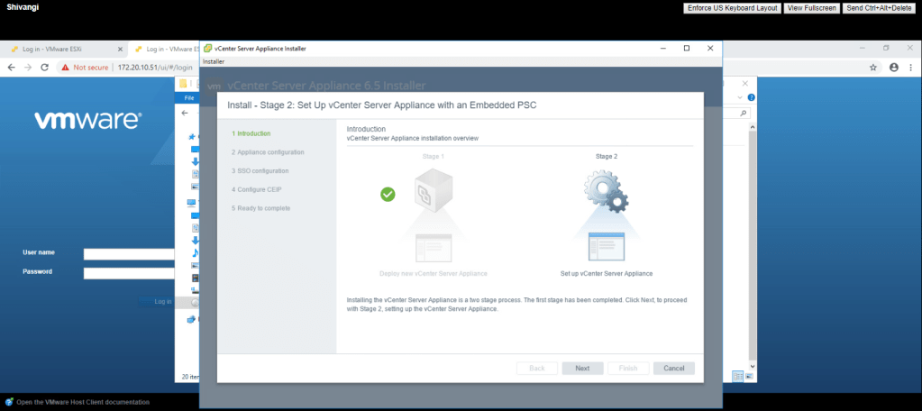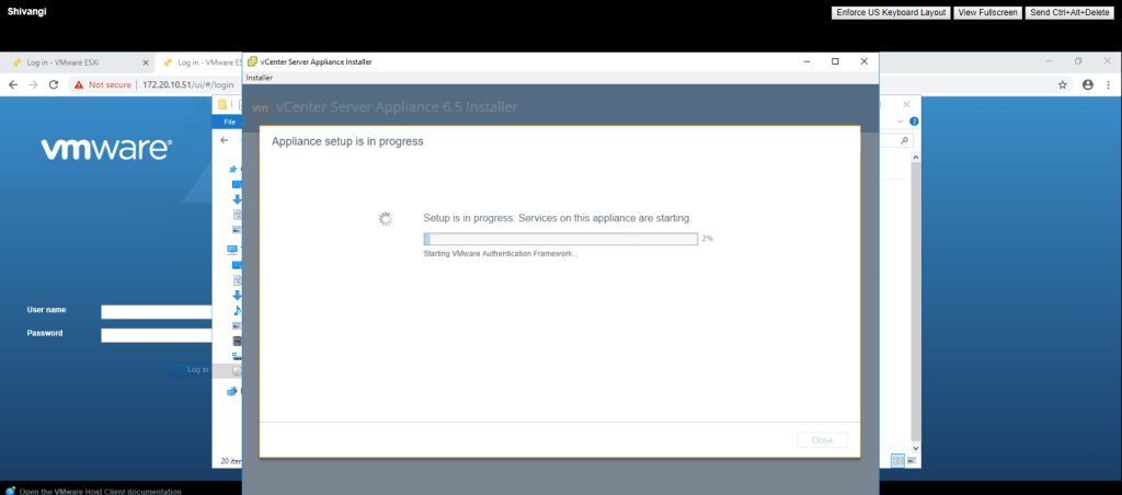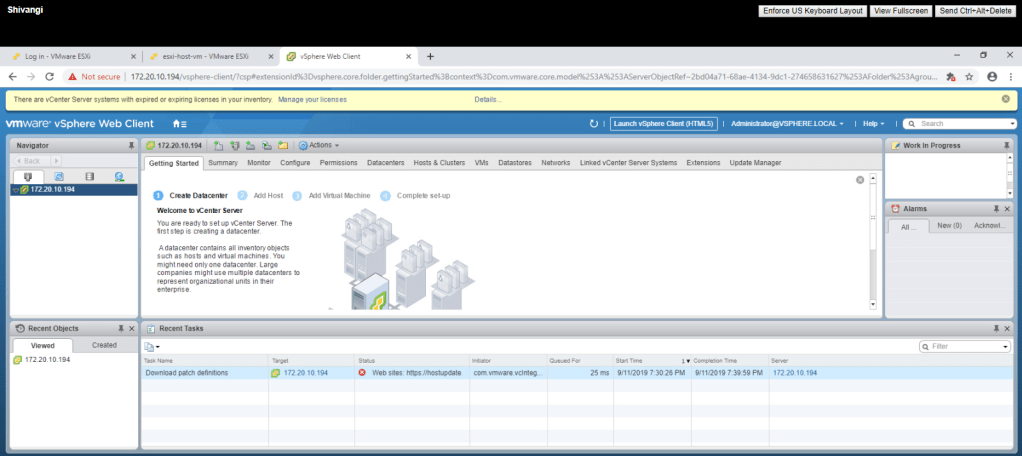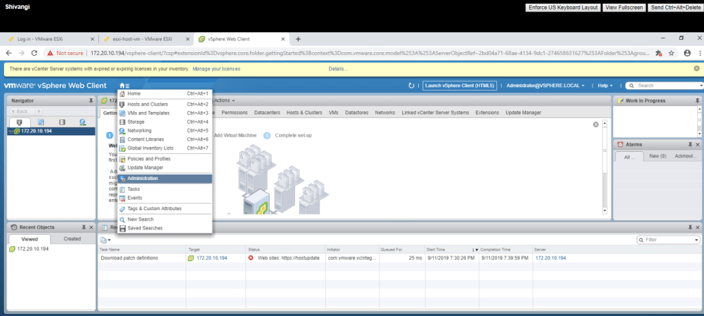 20. Type 172.20.10.194 in the search bar and press enter. Then log in into vCenter server using the user credentials.