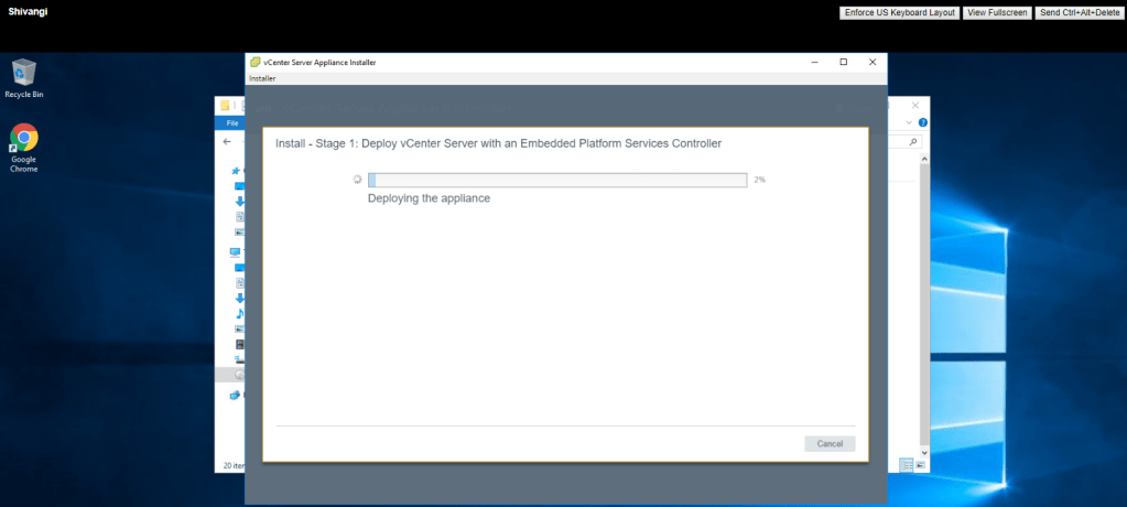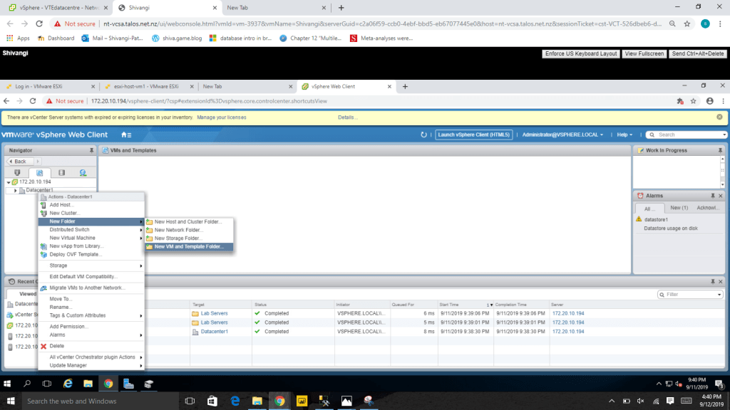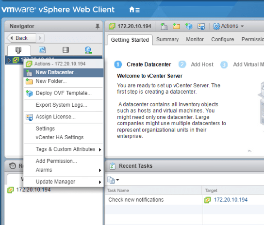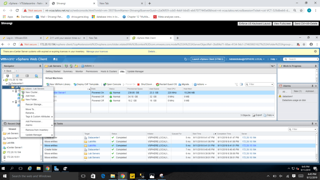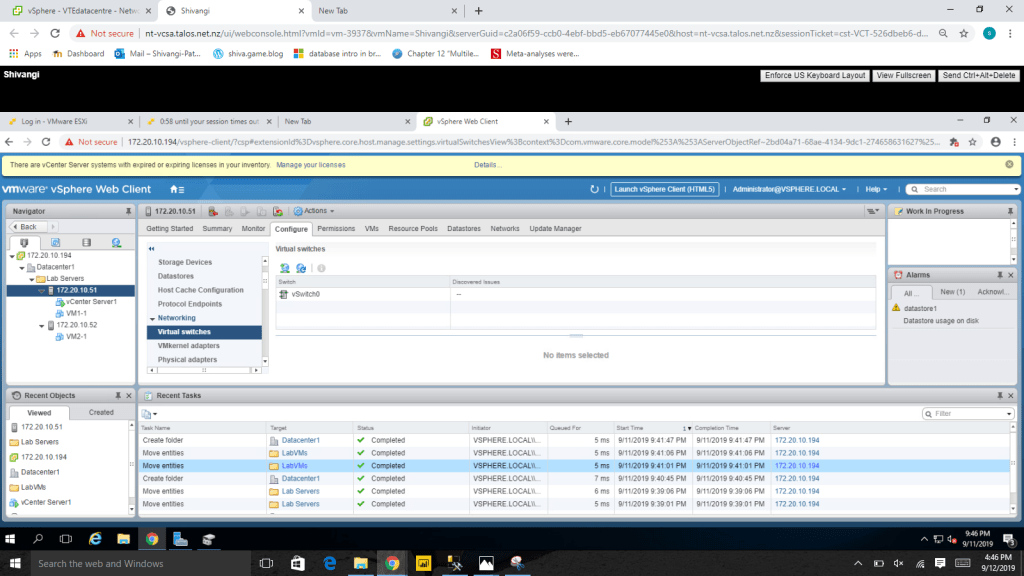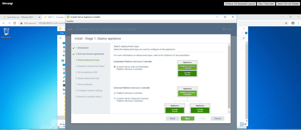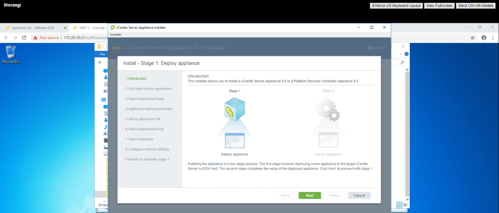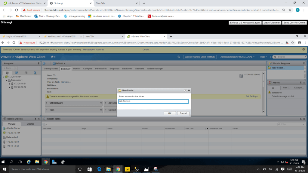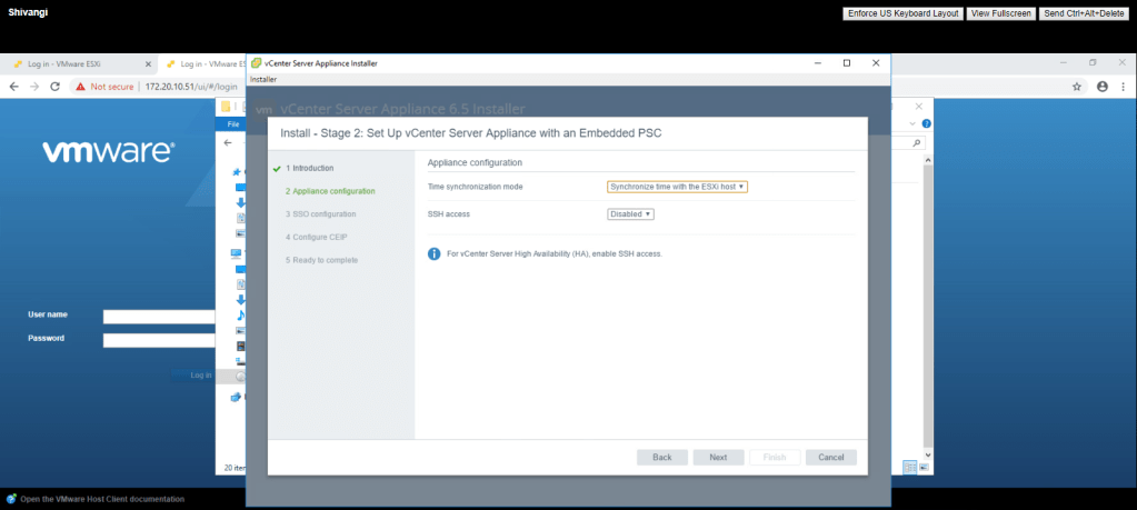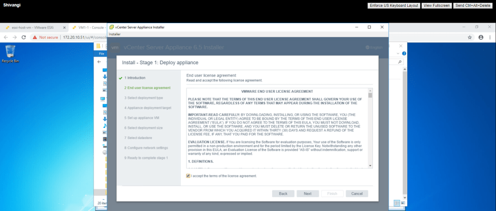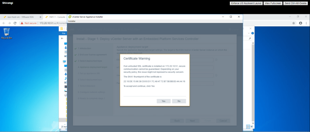 20. Type 172.20.10.194 in the search bar and press enter. Then log in into vCenter server using the user credentials.