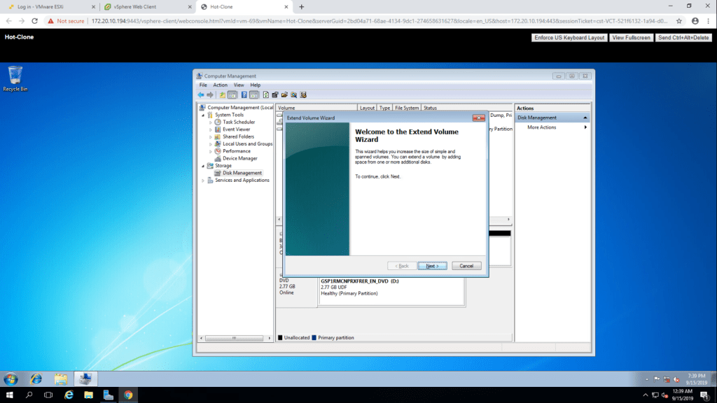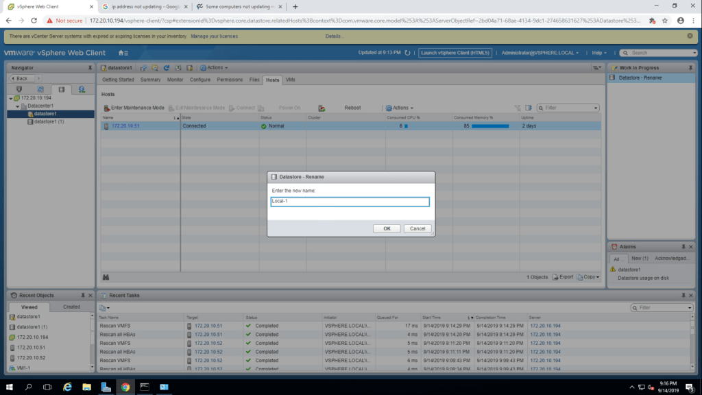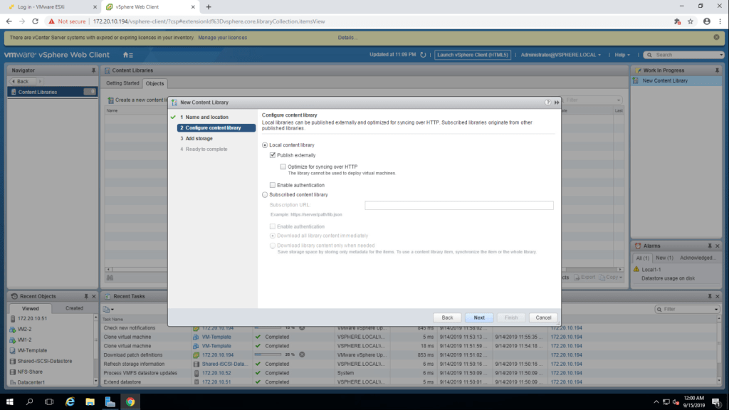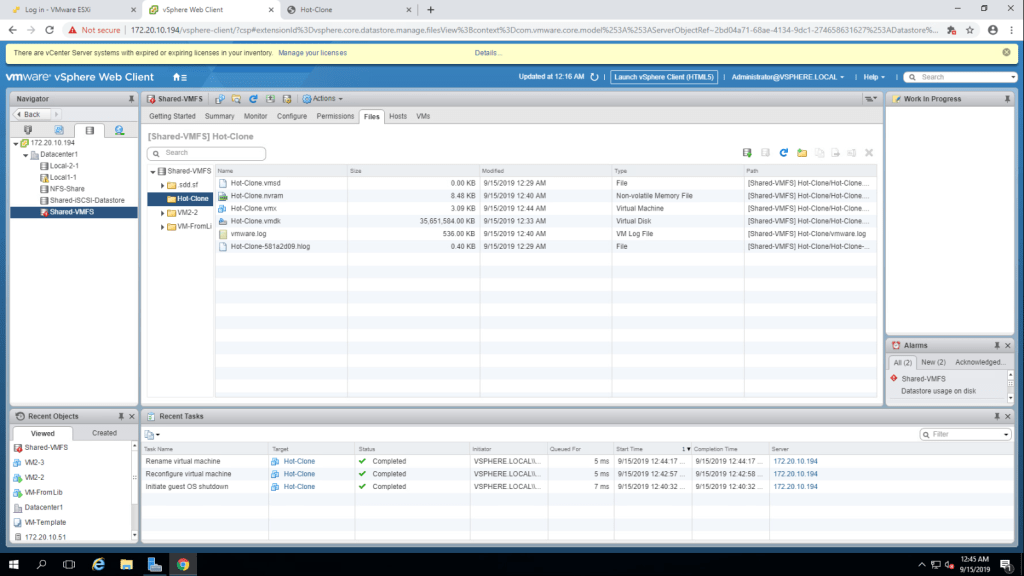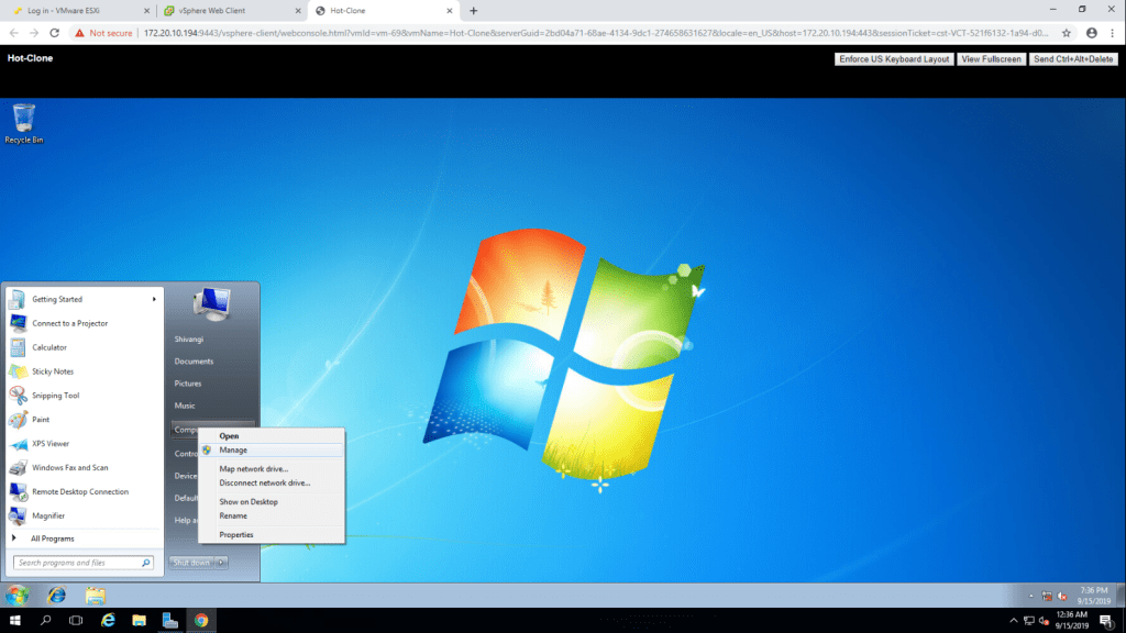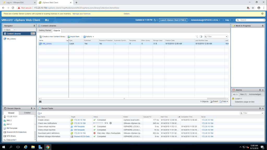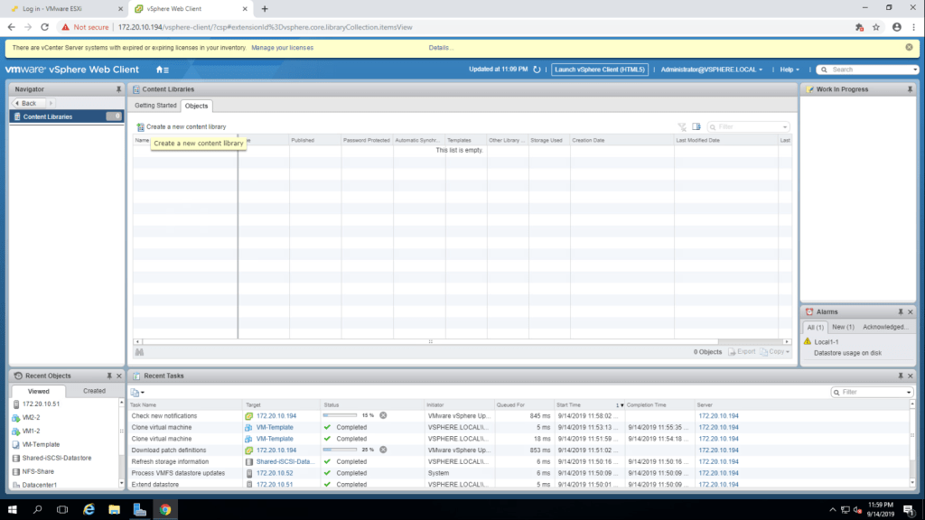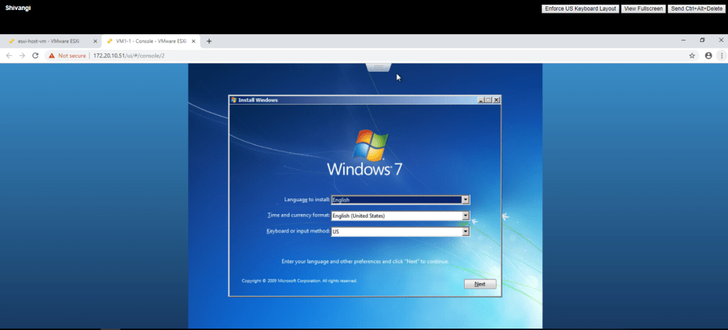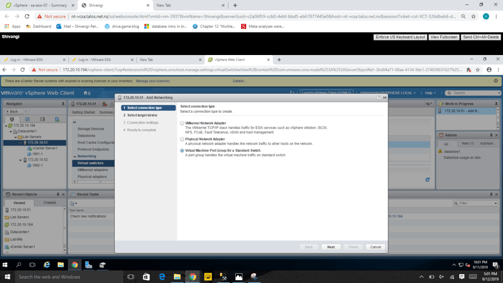 20. Type 172.20.10.194 in the search bar and press enter. Then log in into vCenter server using the user credentials.