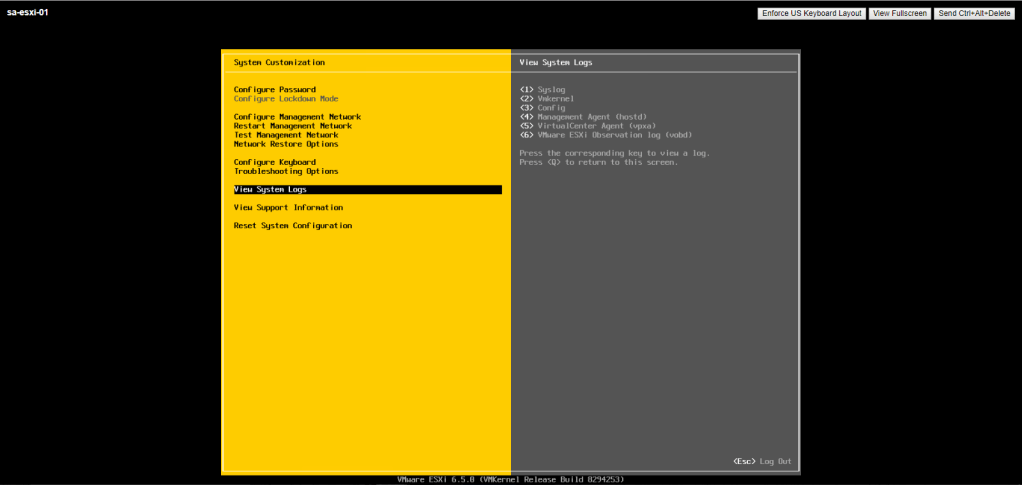 select ‘View System Logs’ and then press 1 to display the host syslog.