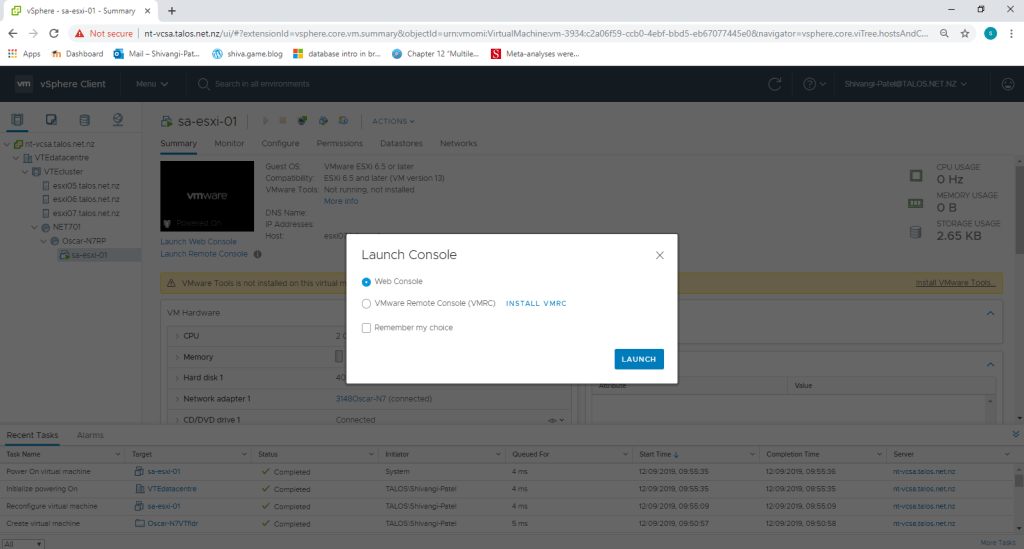 13. Now Power on the virtual machine sa-esxi-01 and then launch console, select web console and then click on launch.