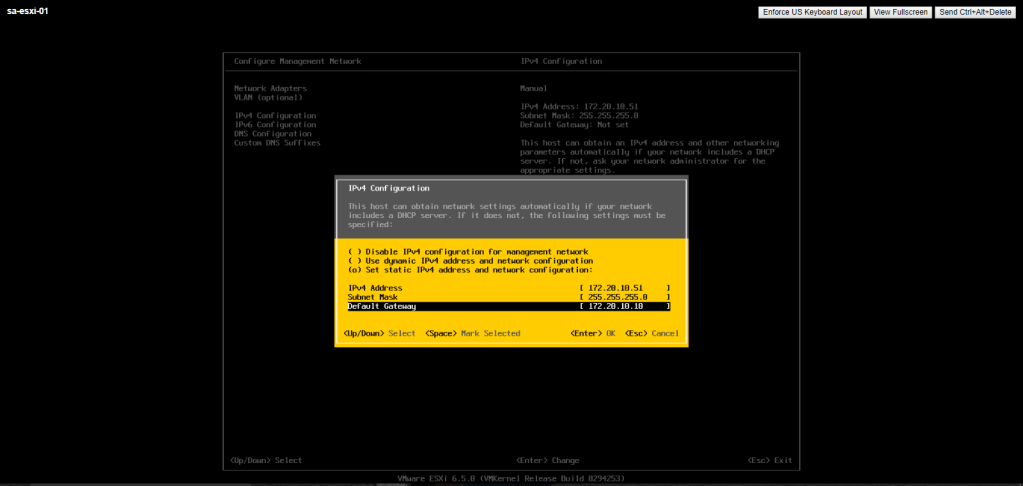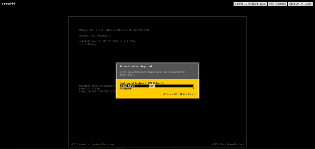 Note: Install another ESXi named sa-esxi-02 using the same steps.
