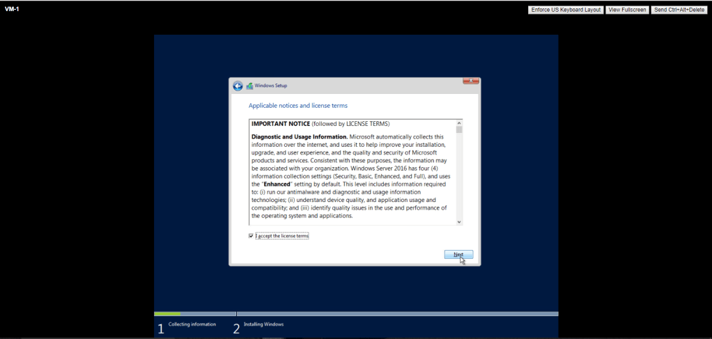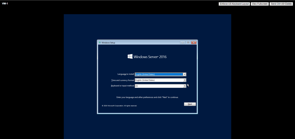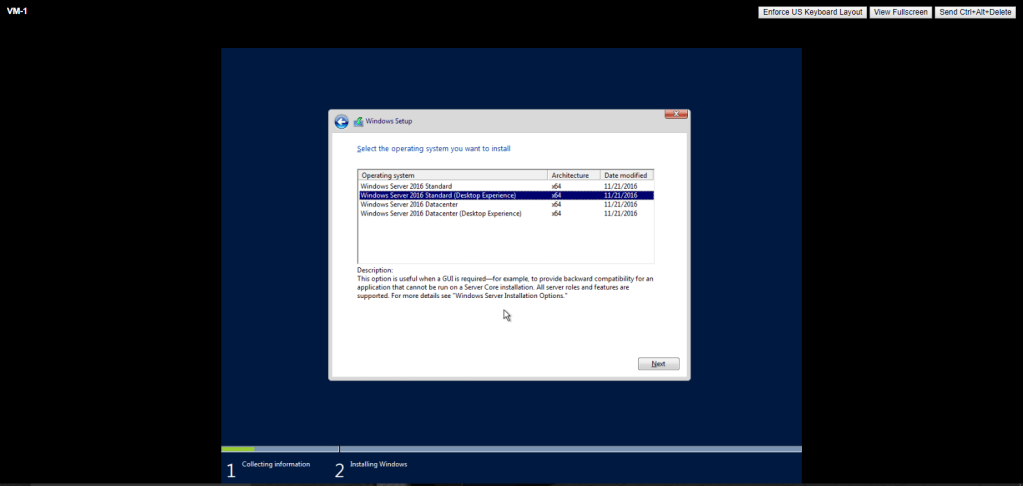 5. Select Windows Server 2016 Standard (Desktop Experience) and then next.