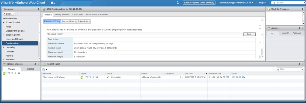 3. Home -> Administration -> Single Sign-on -> Configuration -> Password policies & then click on edit.