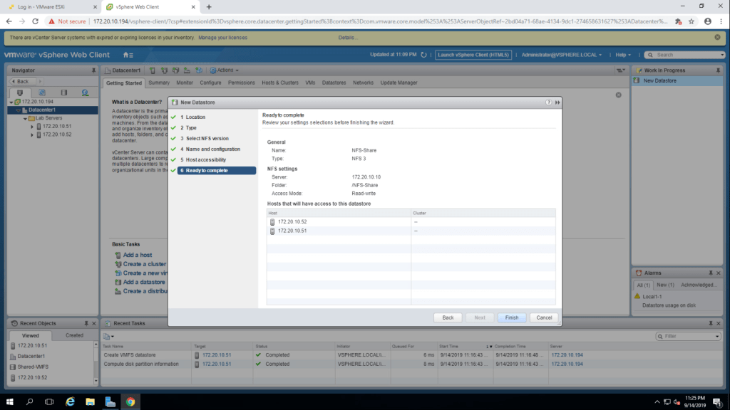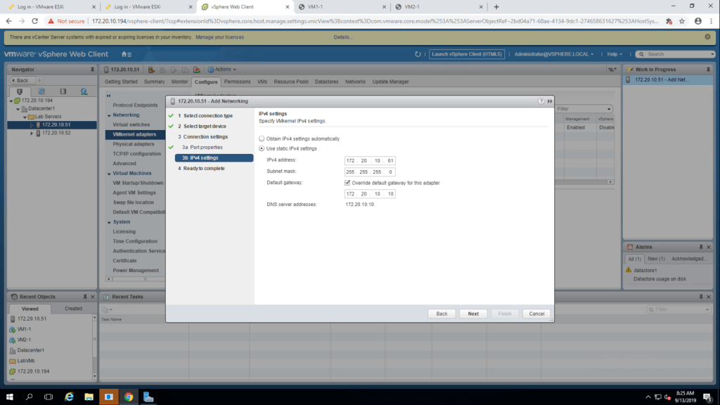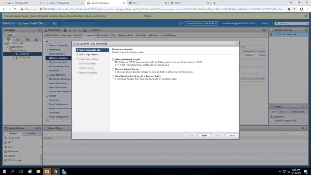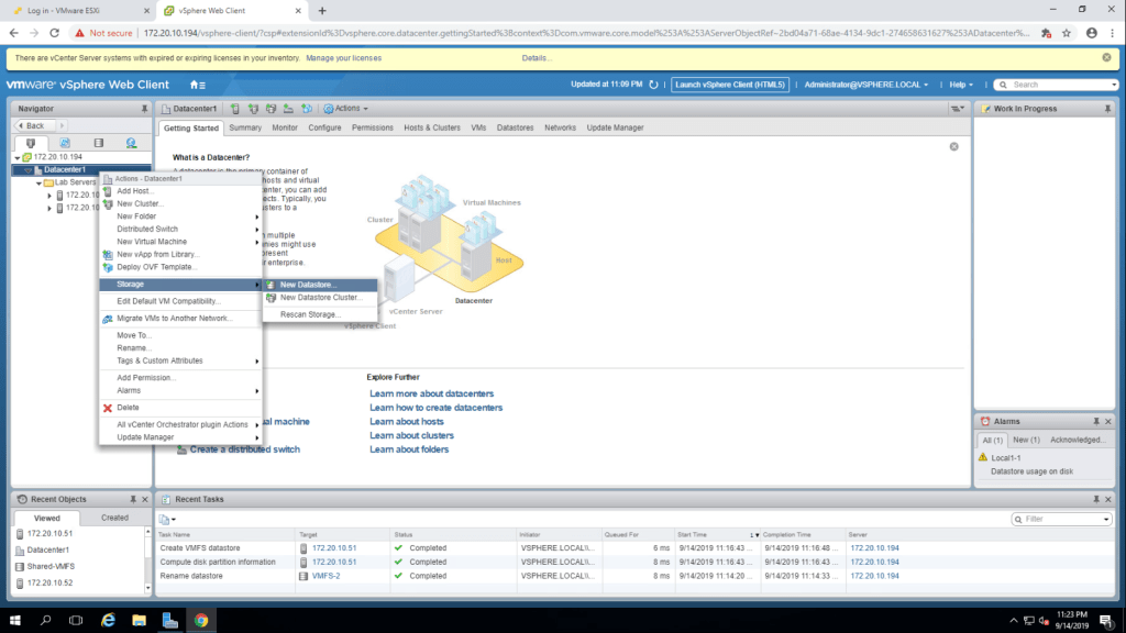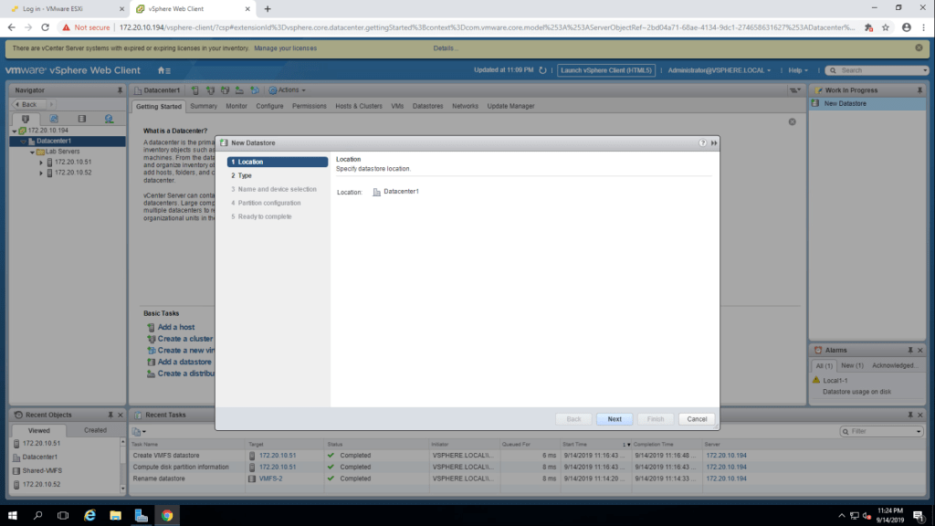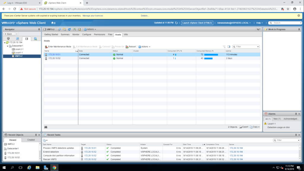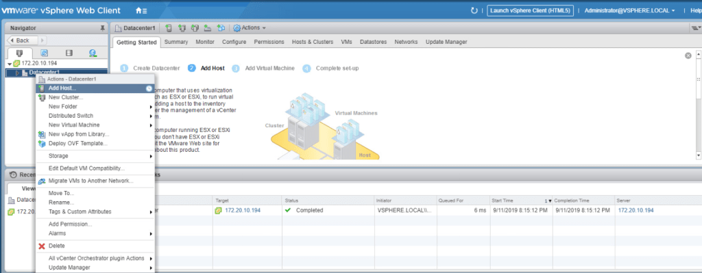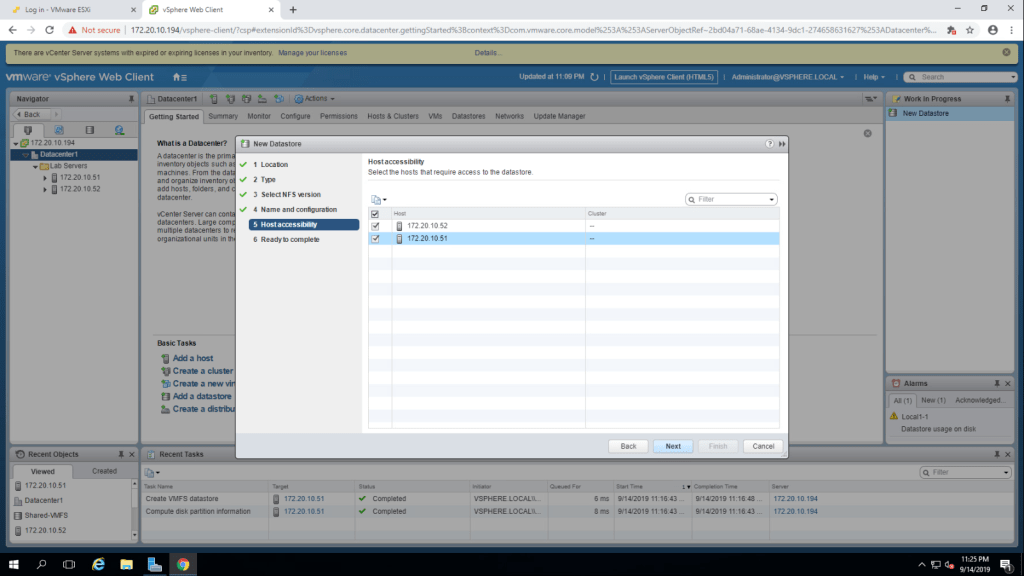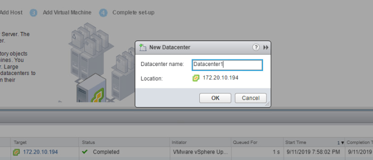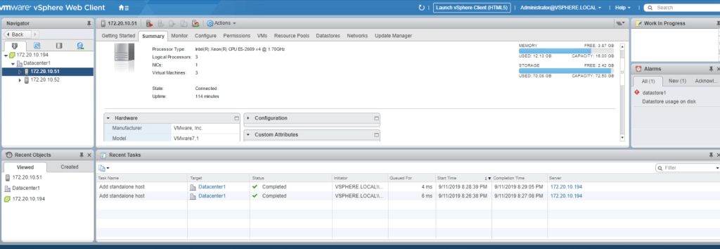 Repeat the same steps to add second esxi host into vcenter server inventory. after that the both esxi hosts will be listed in the datacenter1 panel.
