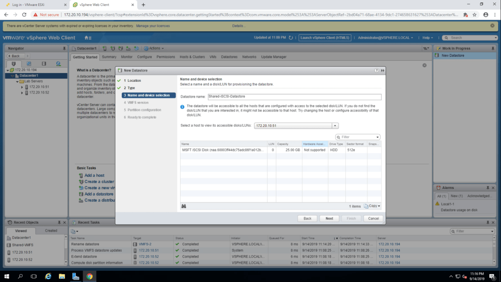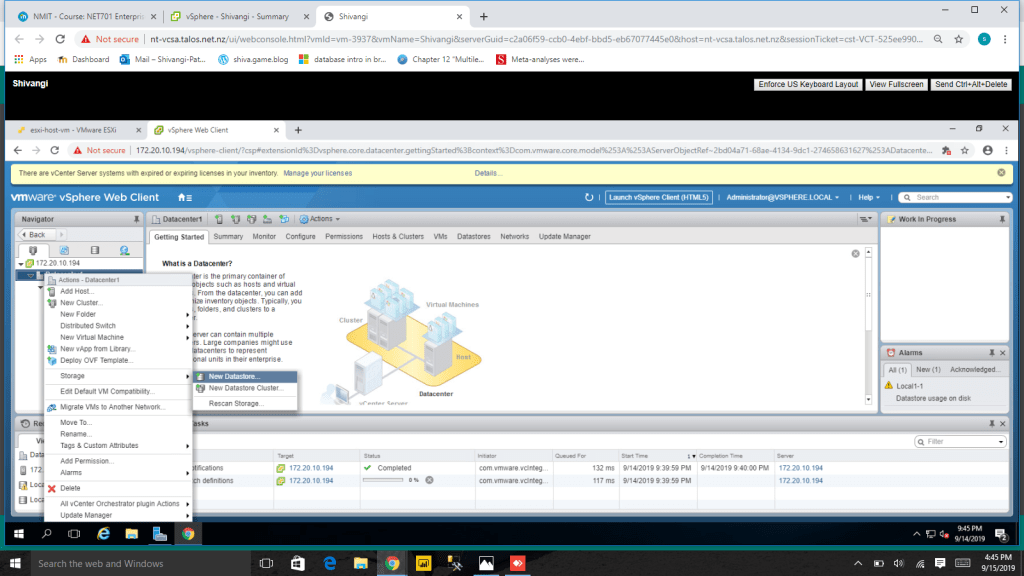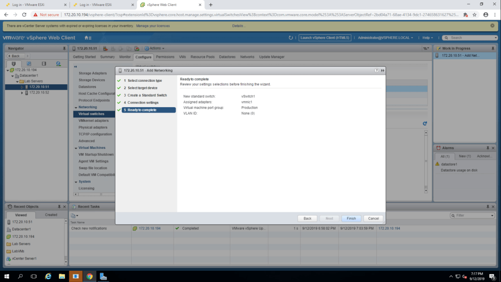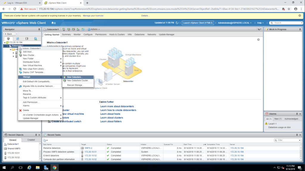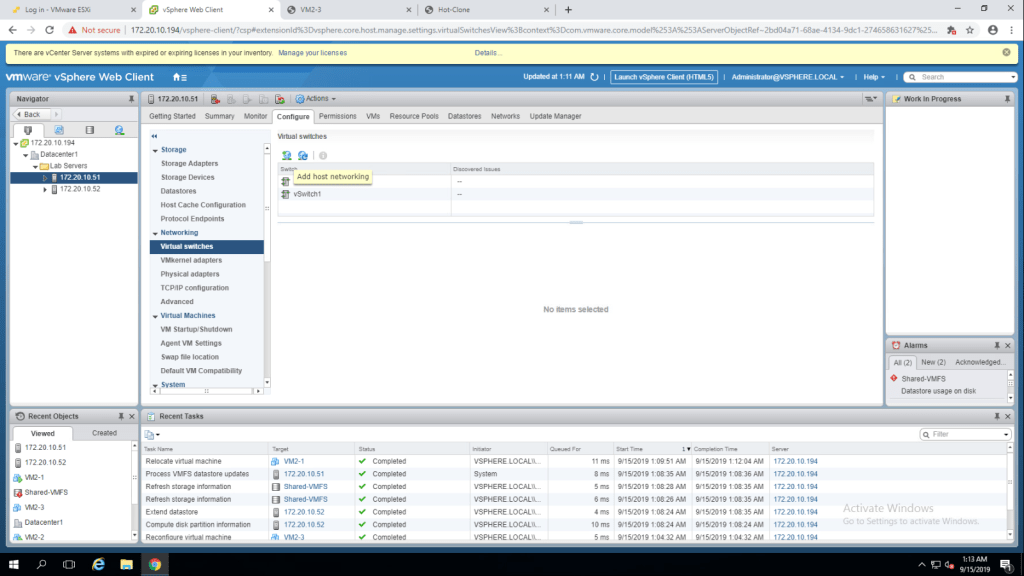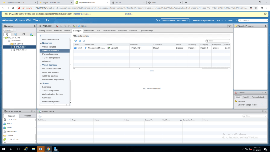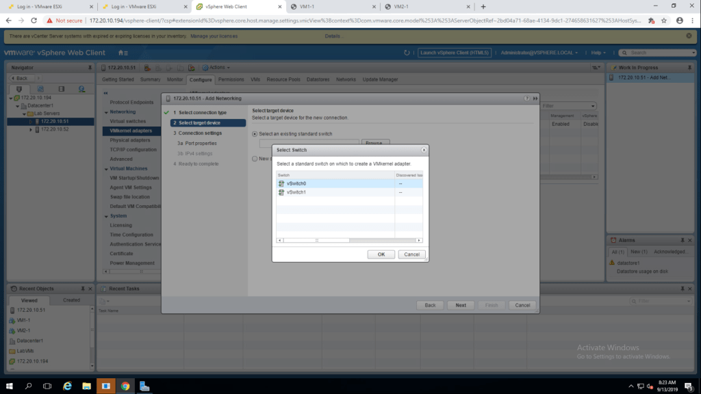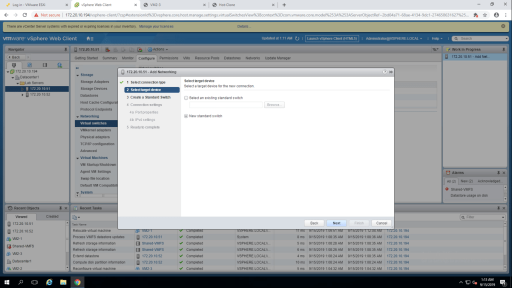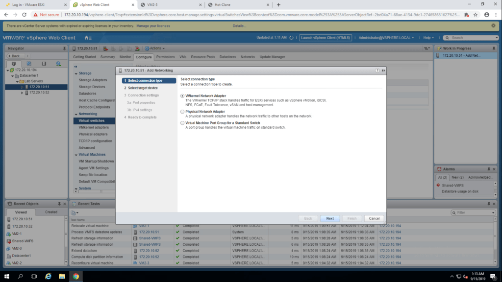 Repeat the same steps to add second esxi host into vcenter server inventory. after that the both esxi hosts will be listed in the datacenter1 panel.