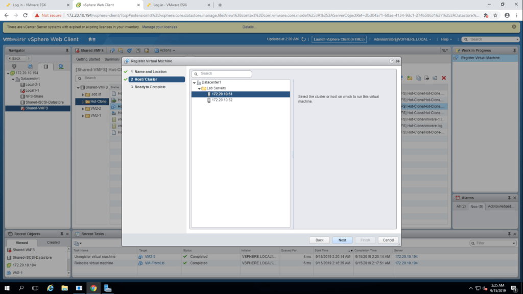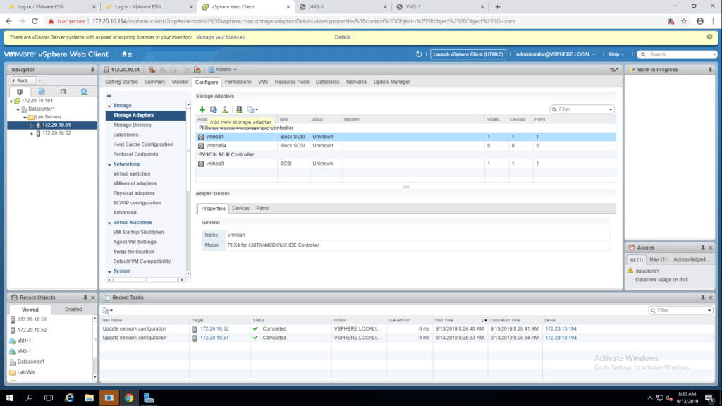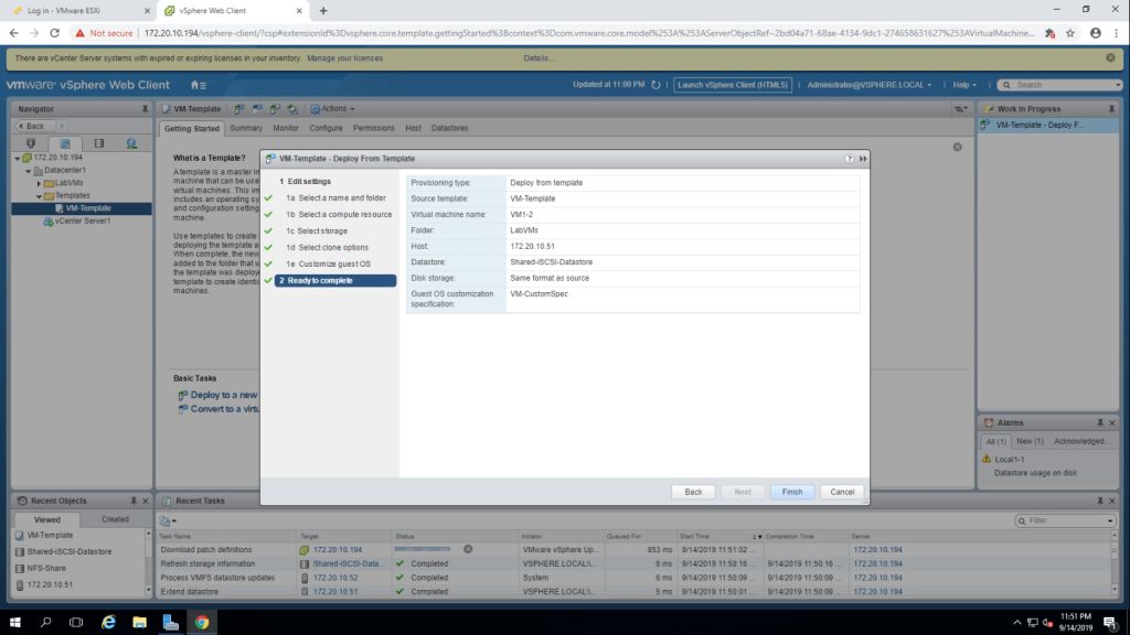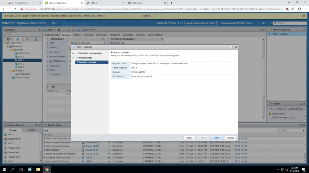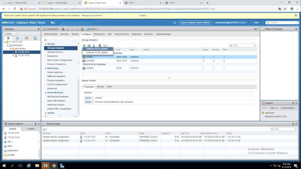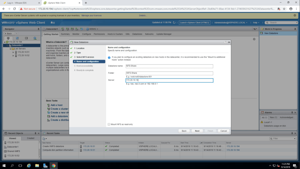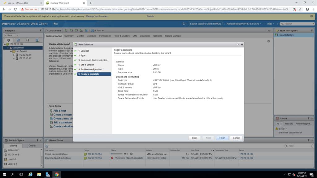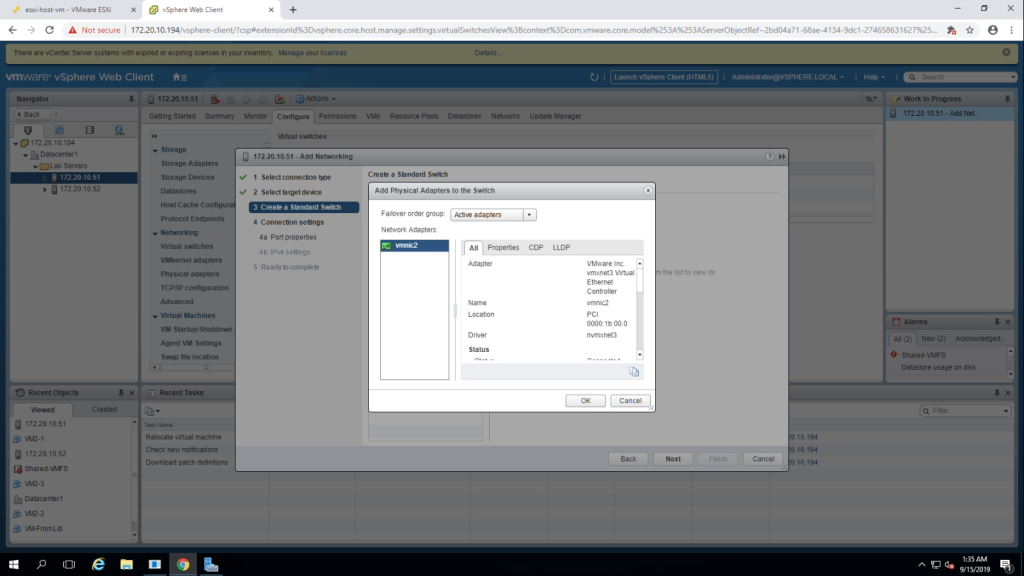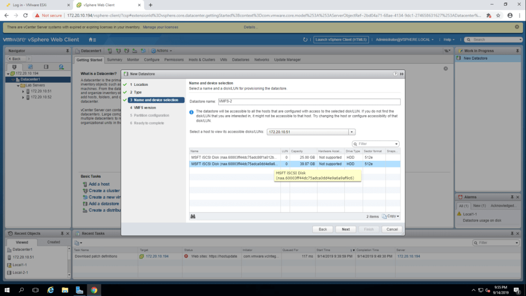 Repeat the same steps to add second esxi host into vcenter server inventory. after that the both esxi hosts will be listed in the datacenter1 panel.