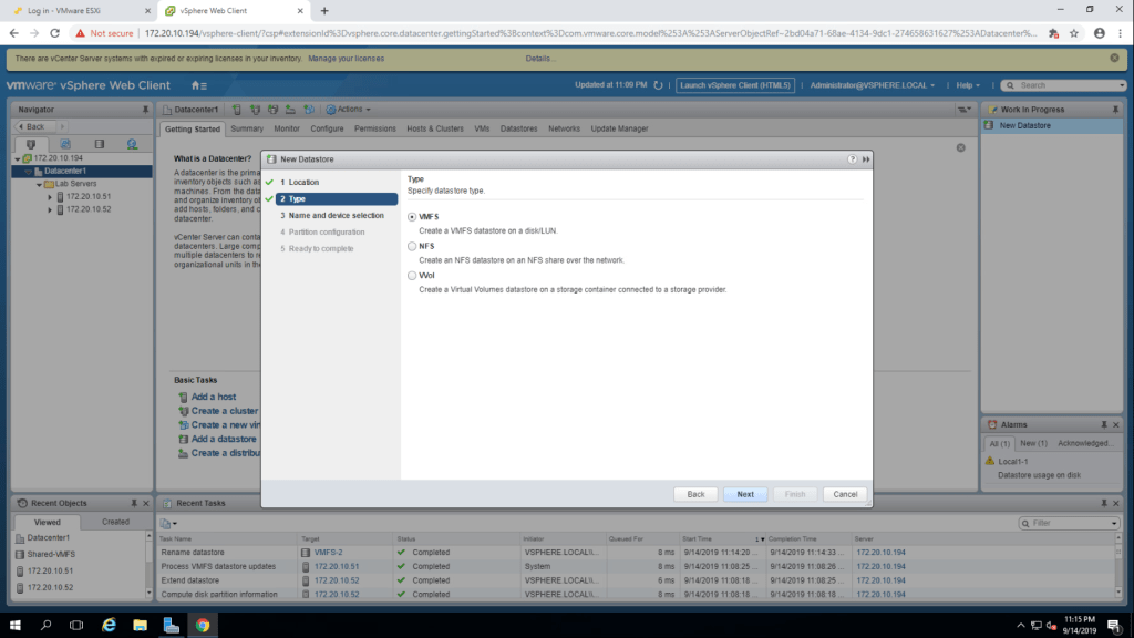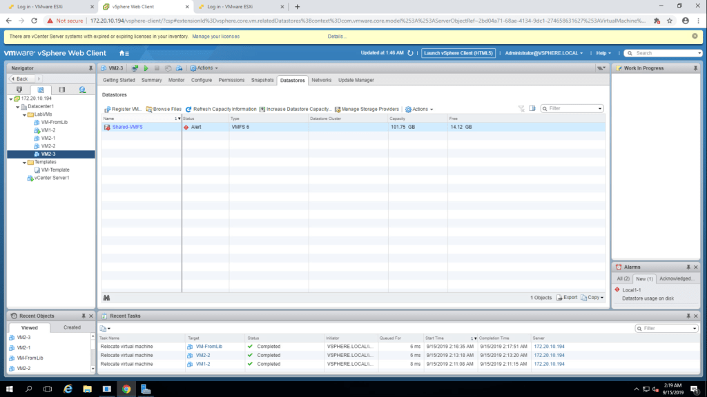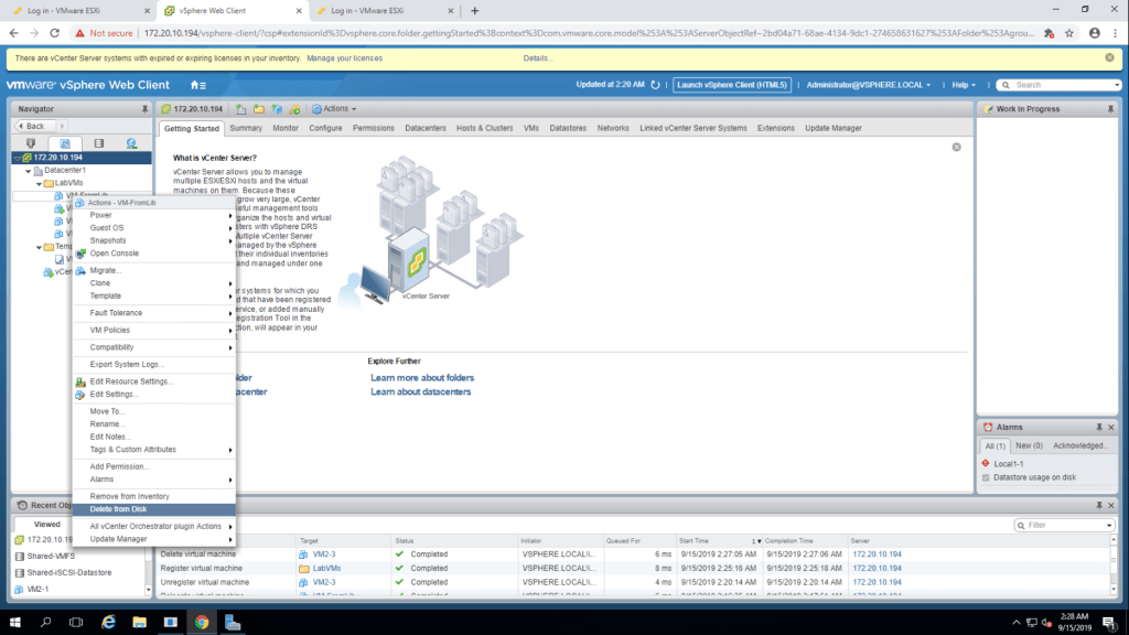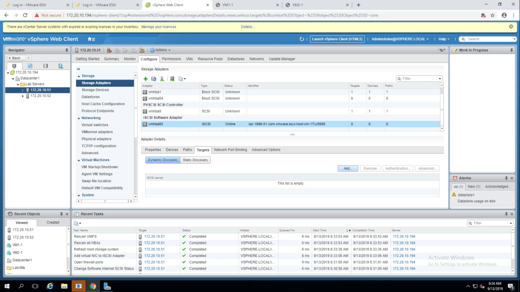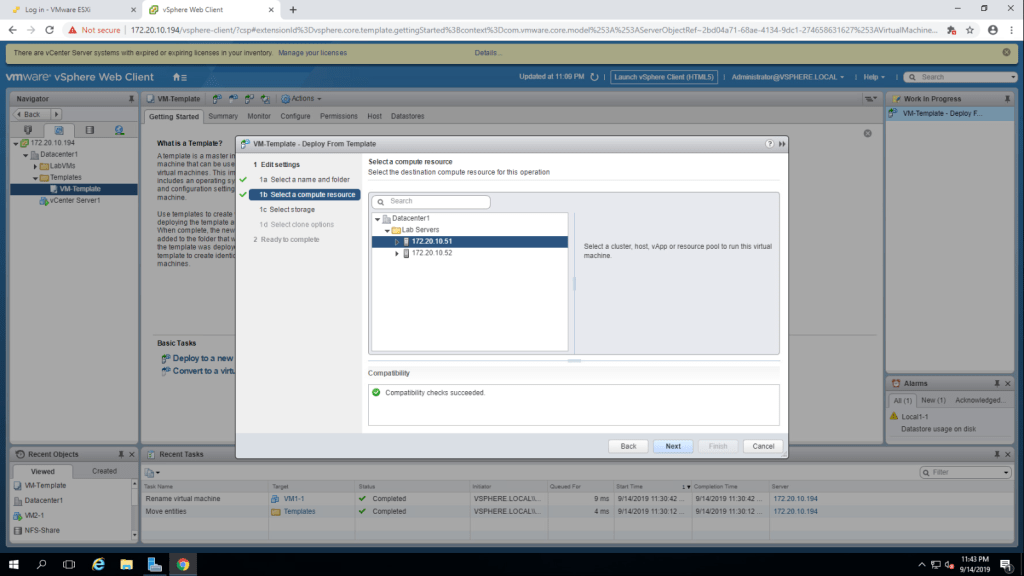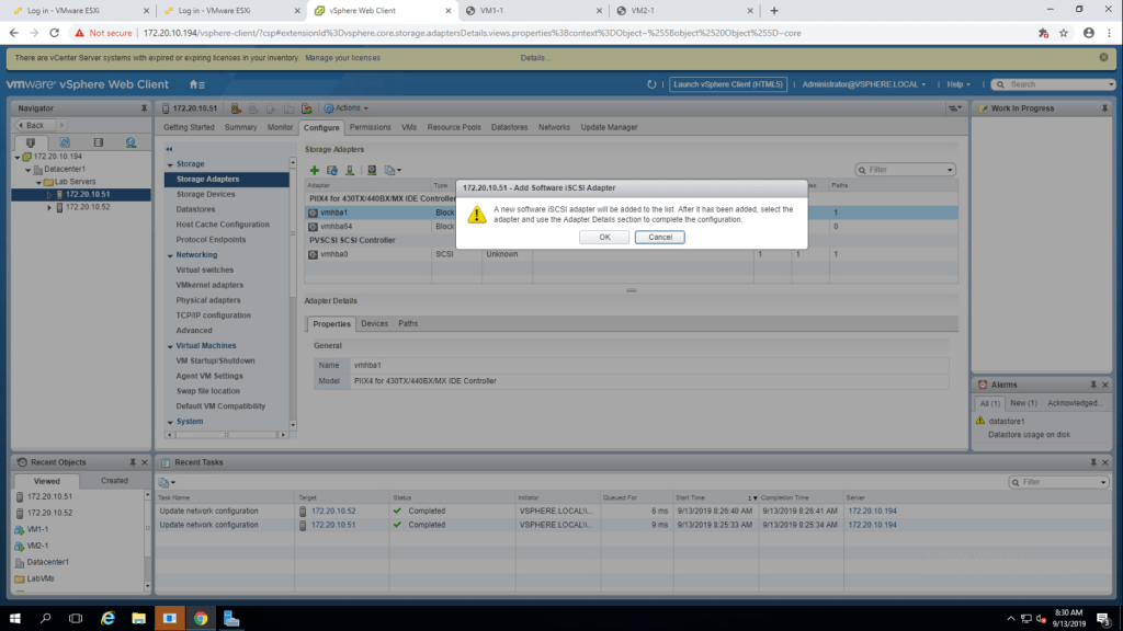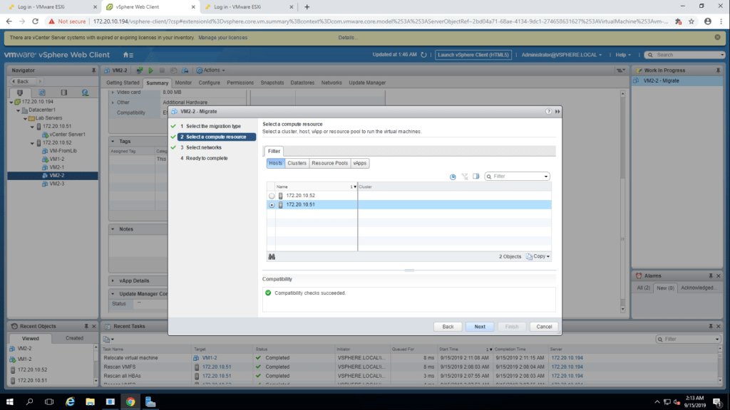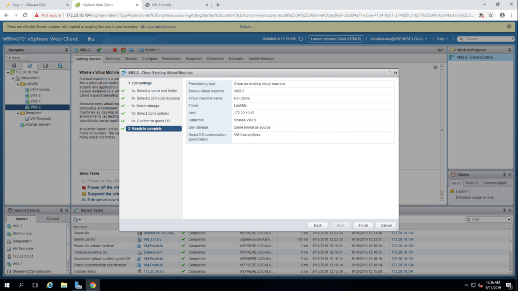 Repeat the same steps to add second esxi host into vcenter server inventory. after that the both esxi hosts will be listed in the datacenter1 panel.