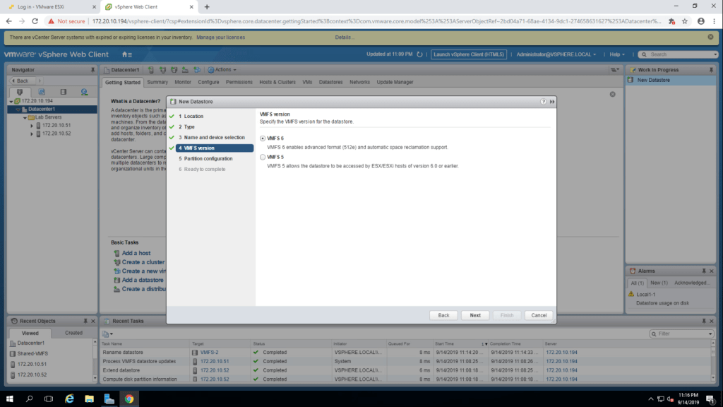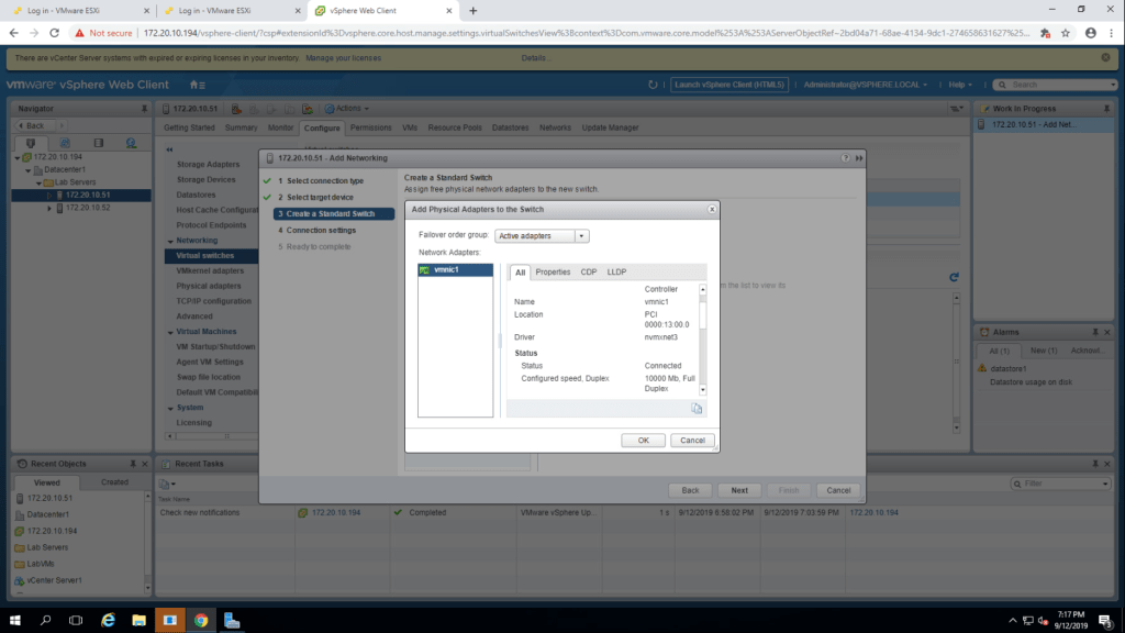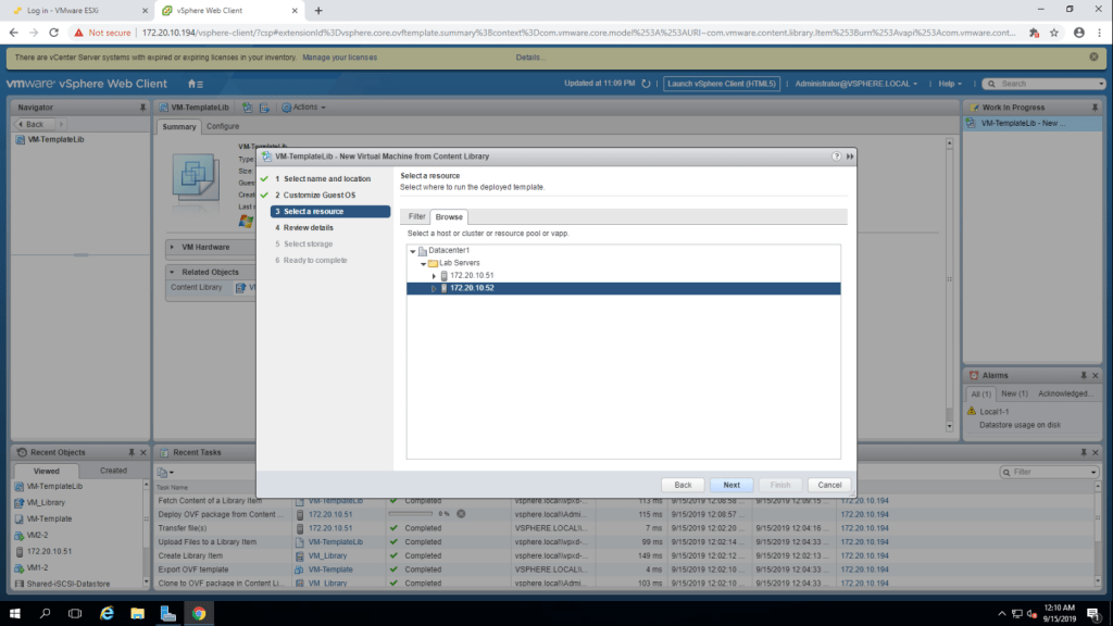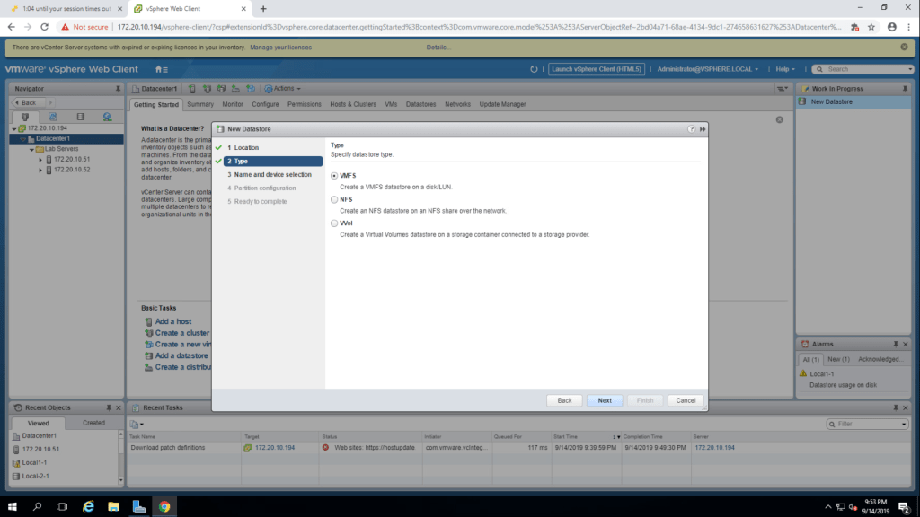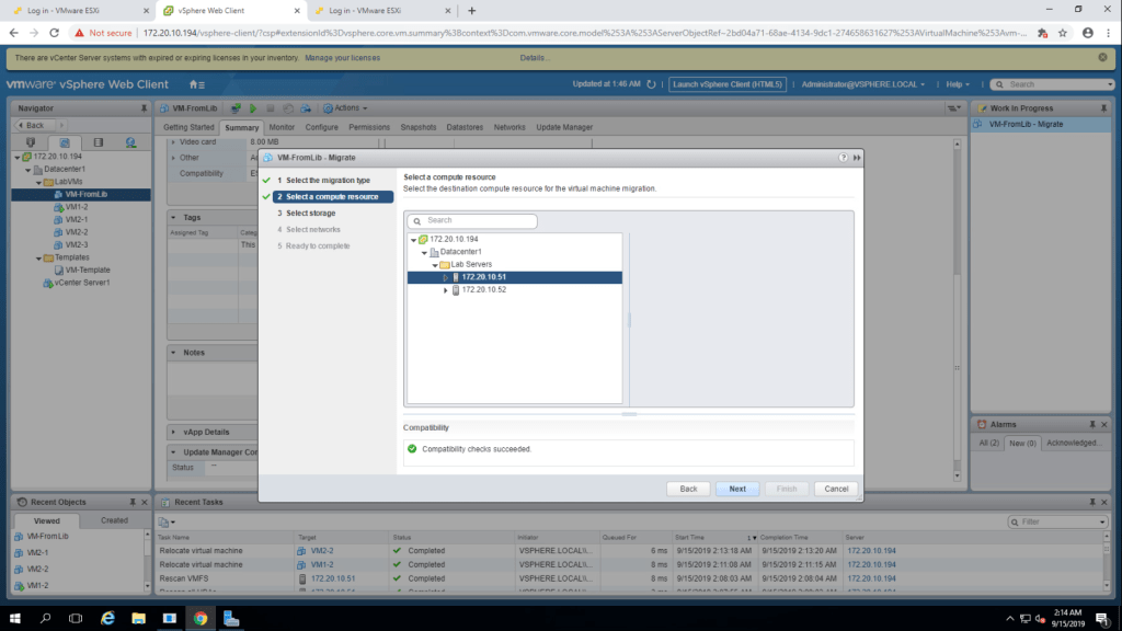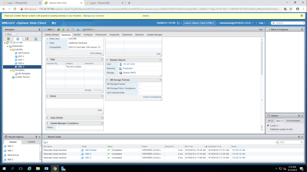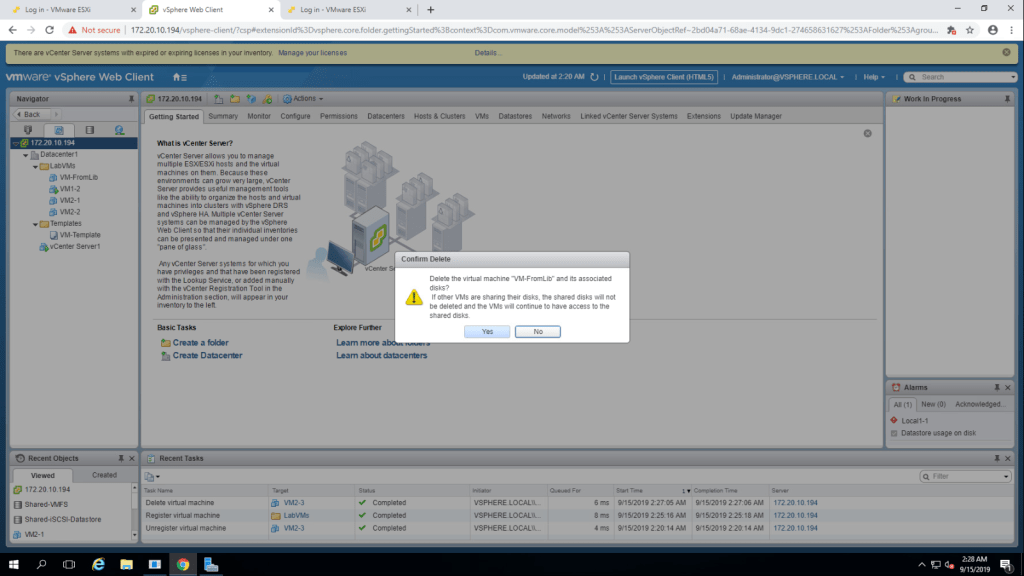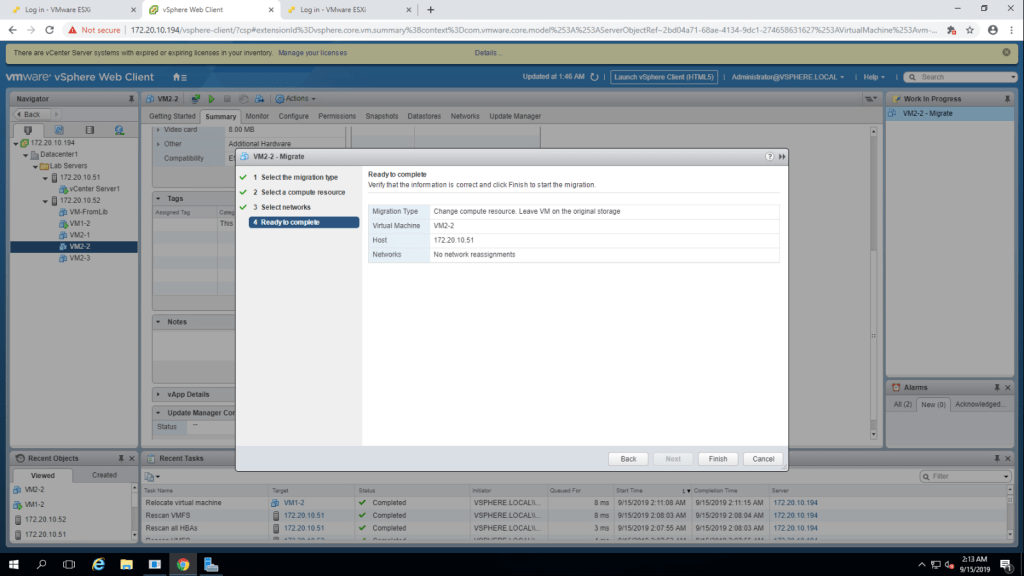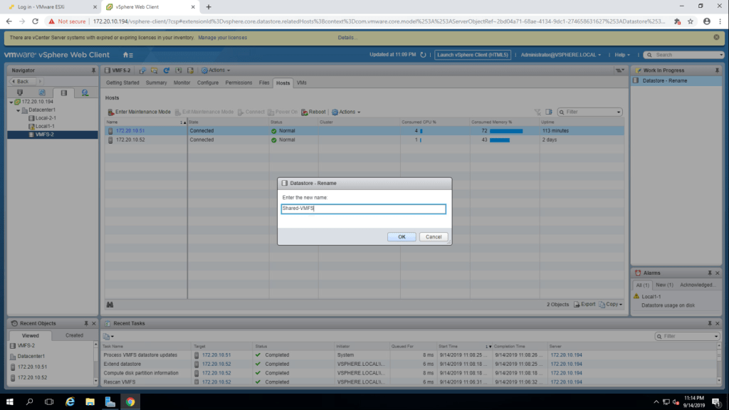 Repeat the same steps to add second esxi host into vcenter server inventory. after that the both esxi hosts will be listed in the datacenter1 panel.