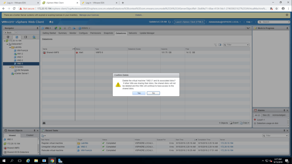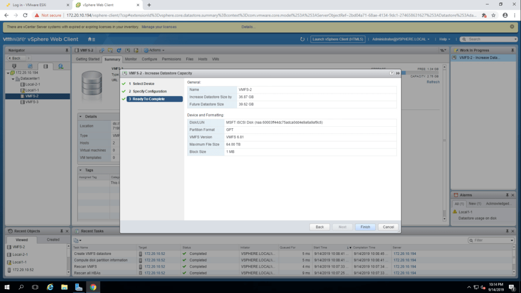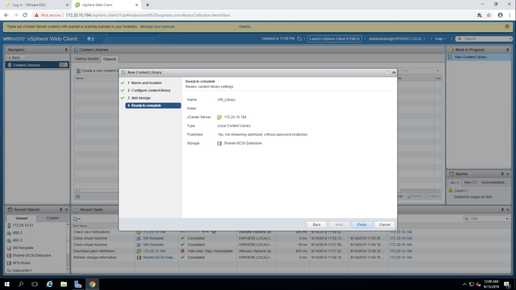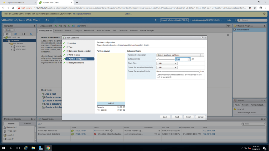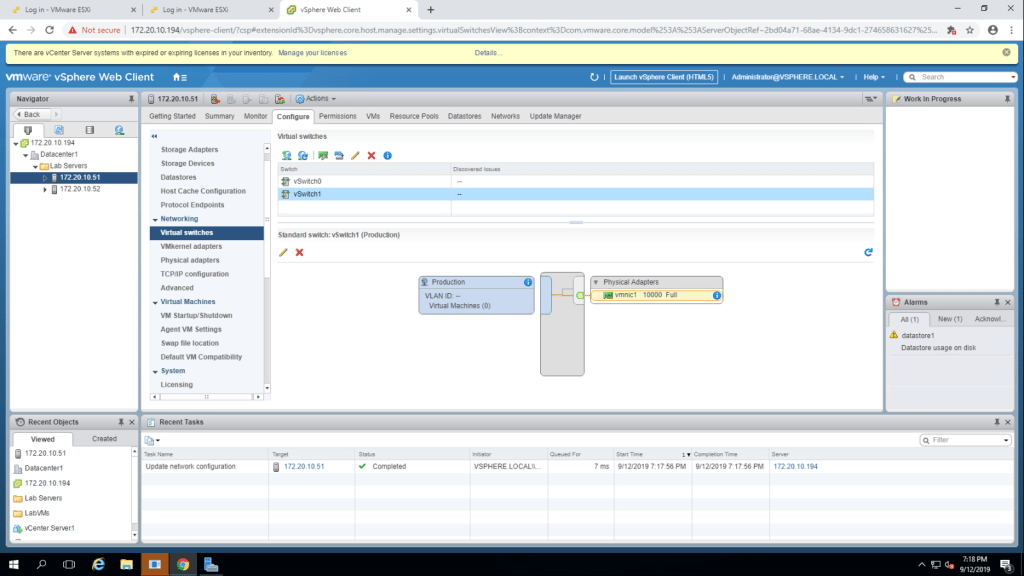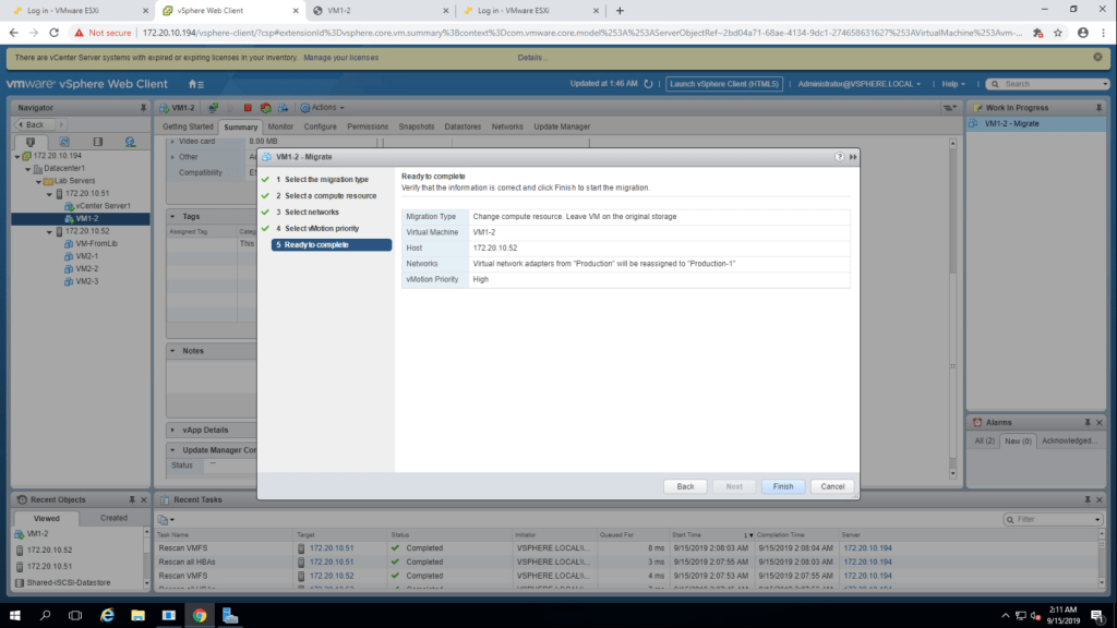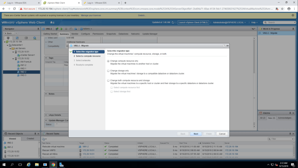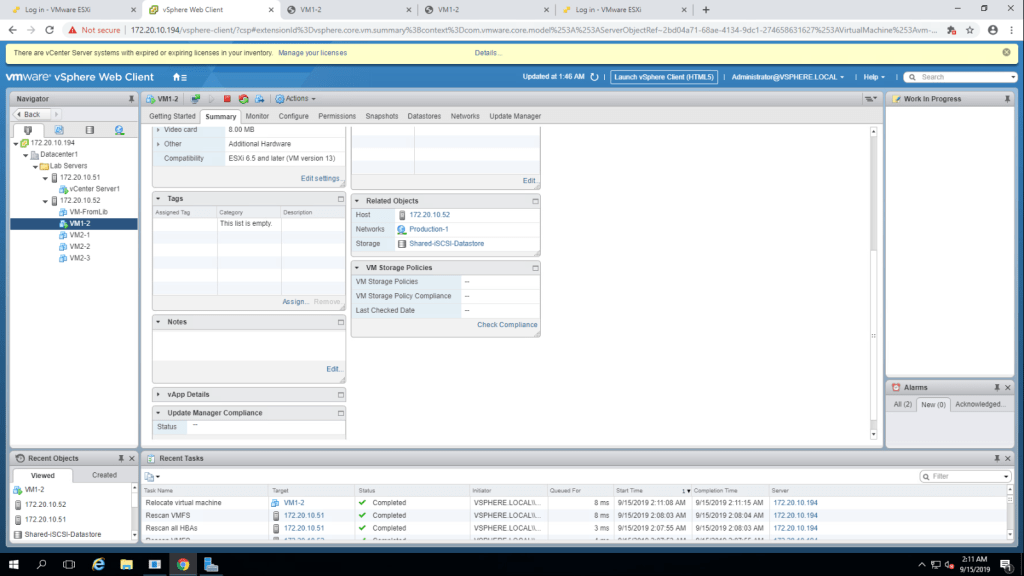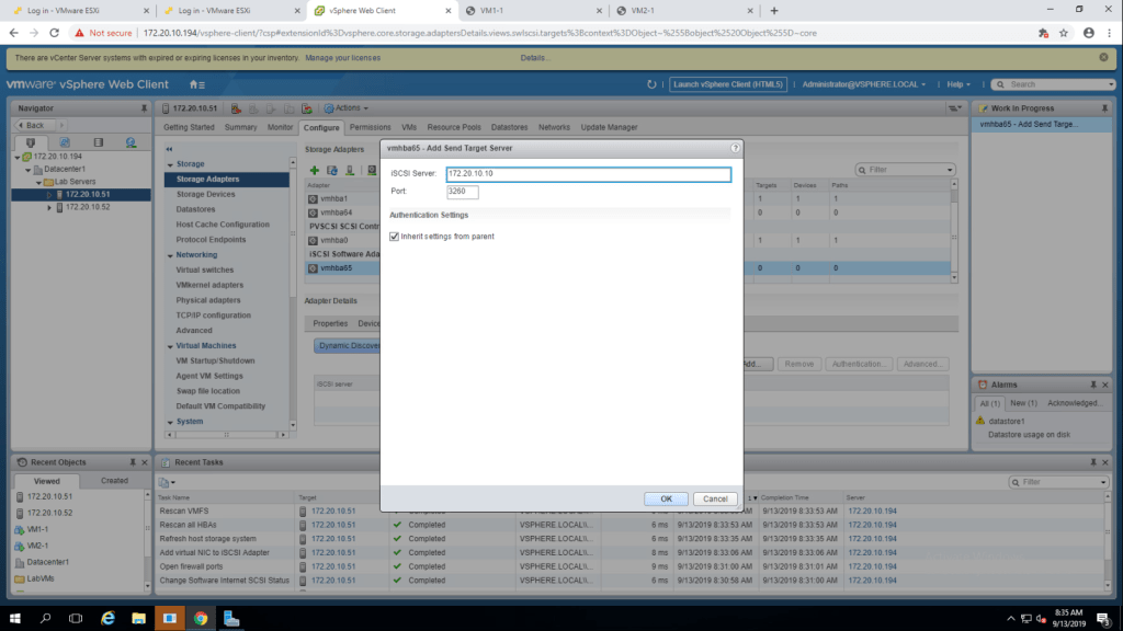 Repeat the same steps to add second esxi host into vcenter server inventory. after that the both esxi hosts will be listed in the datacenter1 panel.