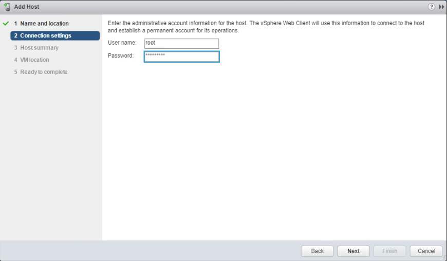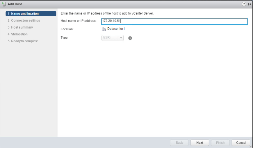 2. Give the Host name or IP address to add that host into vcenter server and click next.