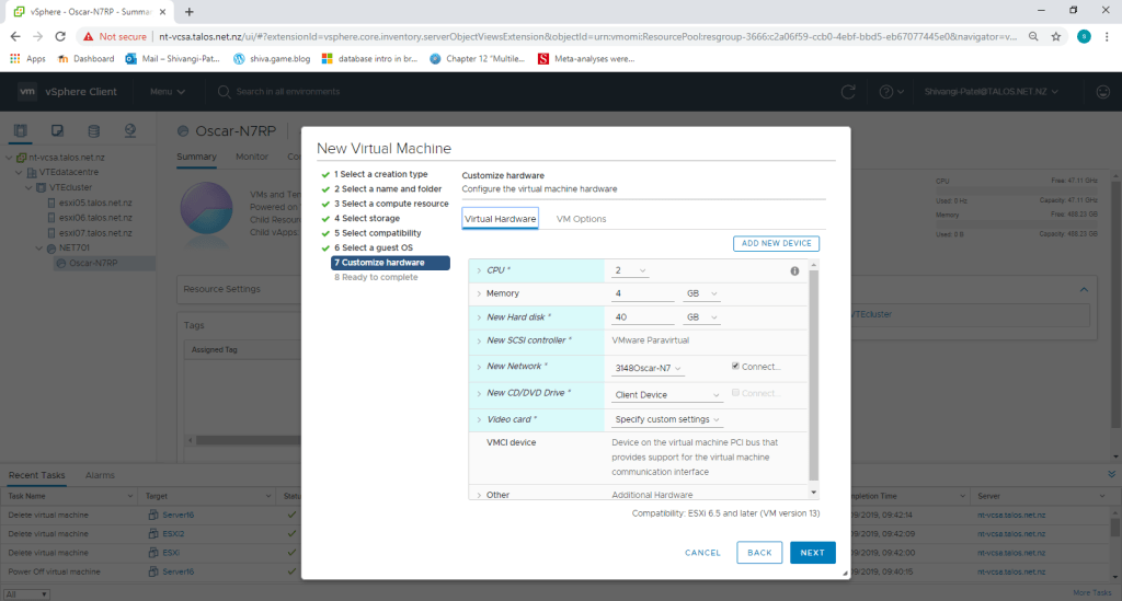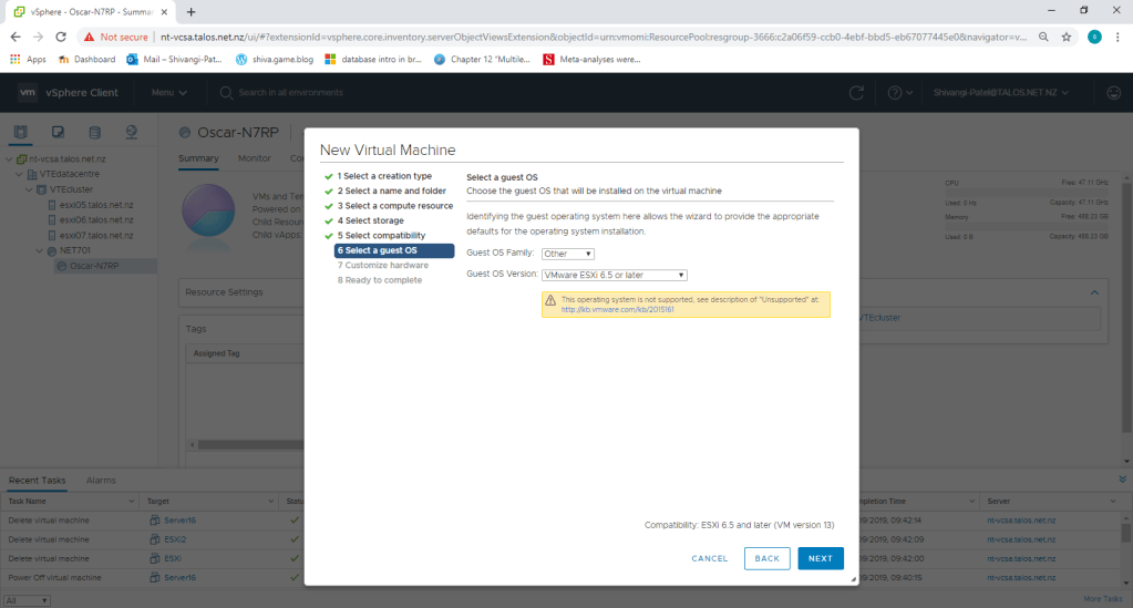 7. Select Compatible with ‘ESXI 6.5 or later’ and next.