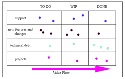 The above figure represent the work that need to be done and left column represent the team of an organization in which it clearly represents that each team only gets three process in one column and not more than that. And this help the XYZ organization to work on their peach eve if the requirements by different customer was increasing and growth was going high.