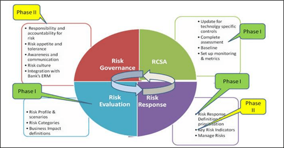 Based on the assessment result the bank also performed the risk assessment test in which the bank need predefined process and for that the bank has developed risk management model where each role and responsibilities was separately discussed. This model is shown in below figure.